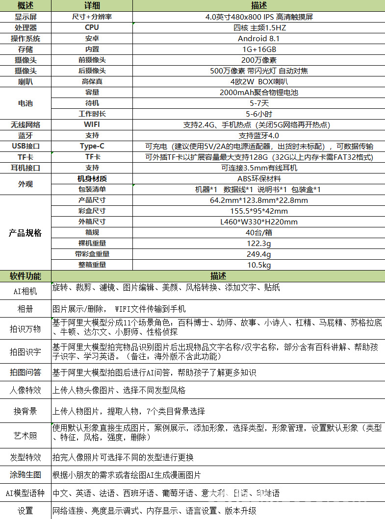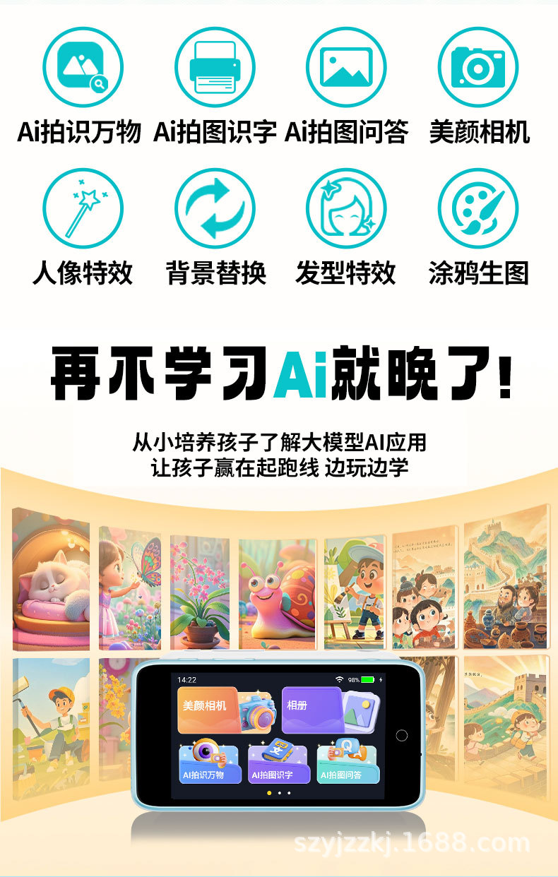 학생 전용 대형 모델 스마트 AI 카메라 사진 인식 화면 뷰티 카메라 HD 스크린 포켓 학습 기계