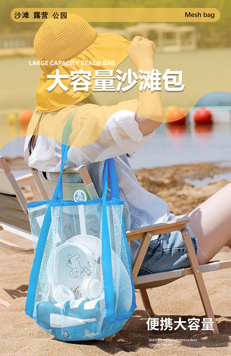 새로운 여행 초대형 휴대용 저장 가방 어린이 어깨 장난감 해변 메쉬 가방 대용량 휴대용 해변 가방스토어 가기