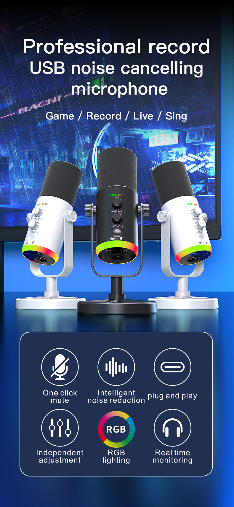 다이나믹 RGB 마이크 컴퓨터 데스크탑 소음 감소 마이크 게임 라이브 USB 노트북 음성 앵커 콘덴서 마이크스토어 가기