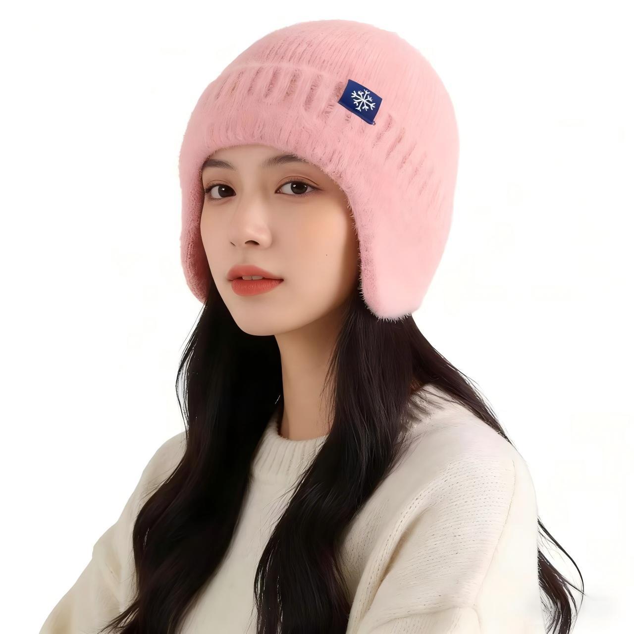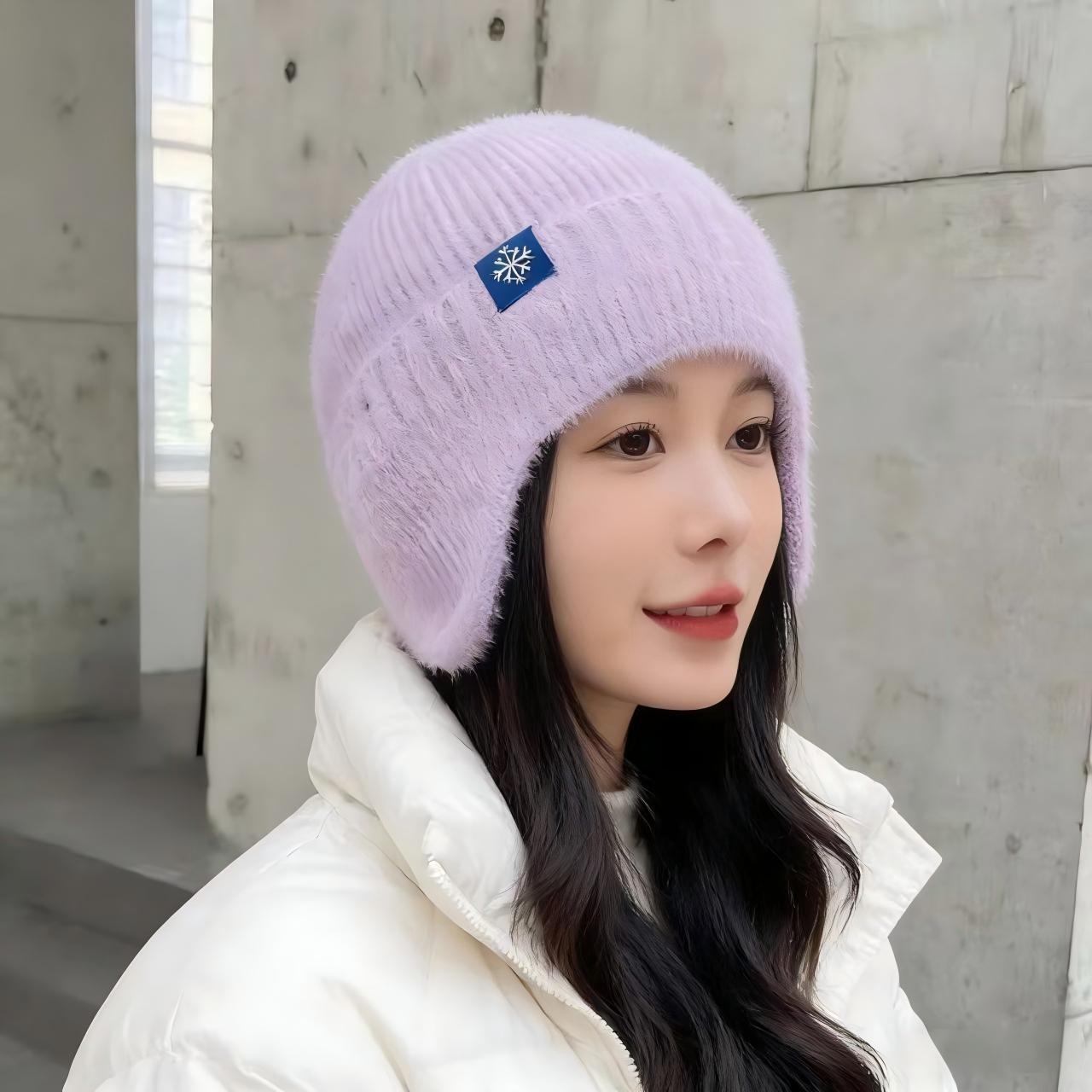 겨울 모자 플러스 벨벳과 두꺼운 새로운 귀 보호 모직 모자 여성용 야외 사이클링 방풍 따뜻한 니트 모자 남성용 밍크 모피