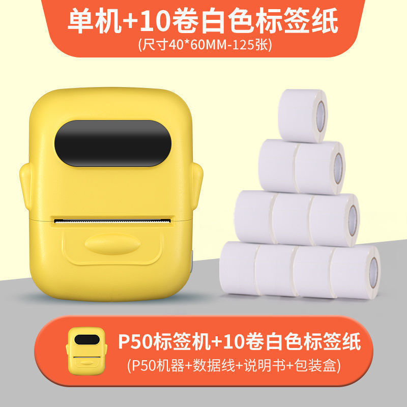 • 크림색 노란색 [12-50mm 인쇄 가능] - 단일 기계 + 흰색 방수 라벨 5롤