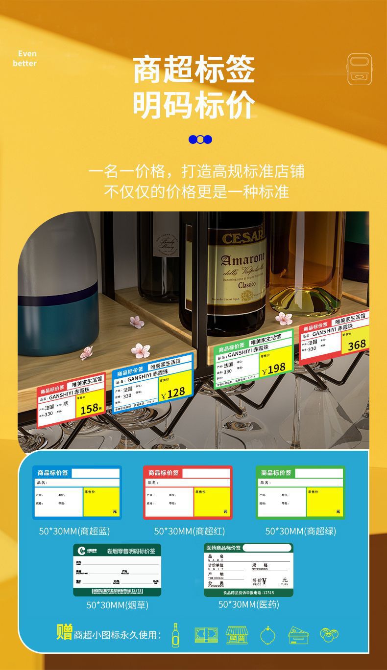• 크림색 노란색 [12-50mm 인쇄 가능] - 종이 3롤 선택 [슈퍼마켓/보석]