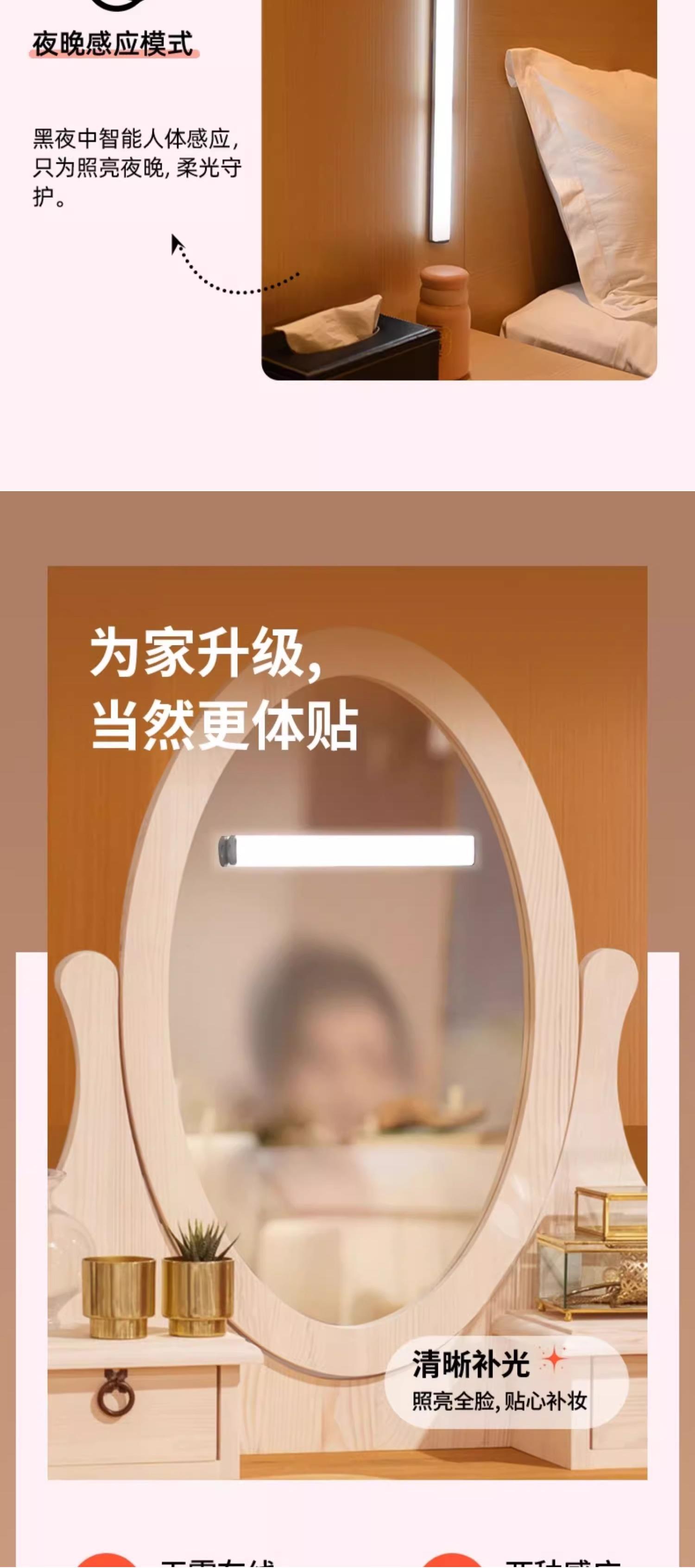 • 둥근 따뜻한 빛(인체 감지 + 충전 모델 + 조명 제어 + 항상 켜짐 + 자기 흡입)