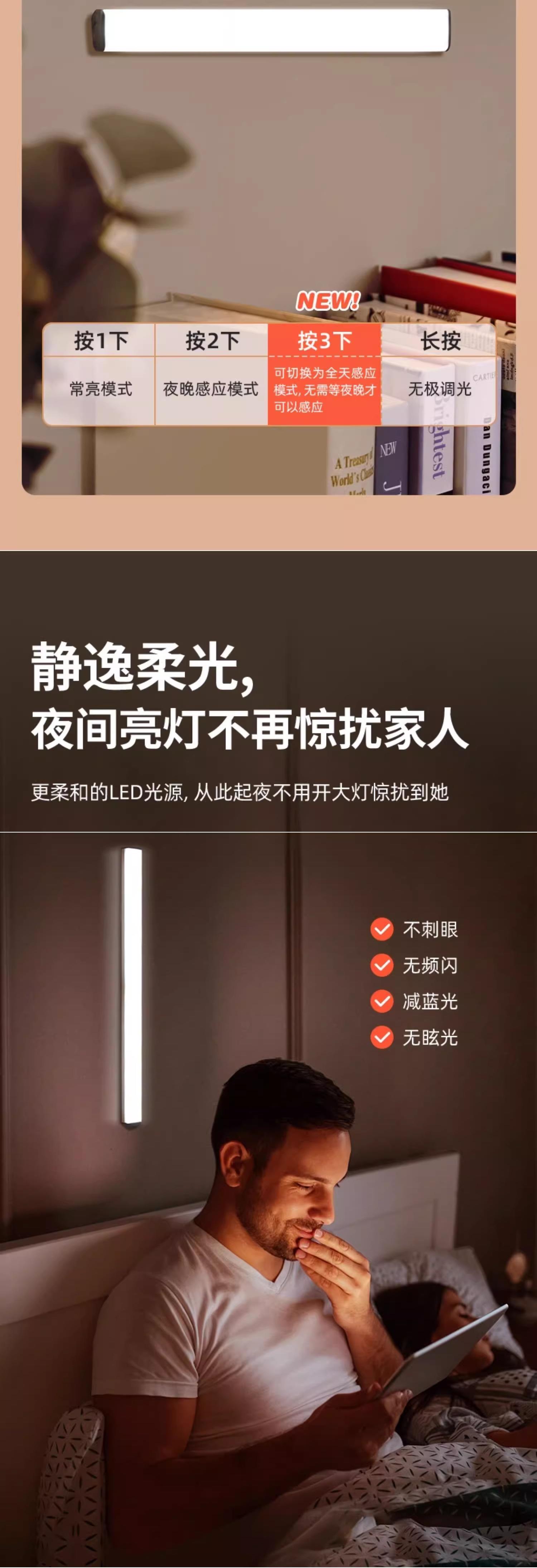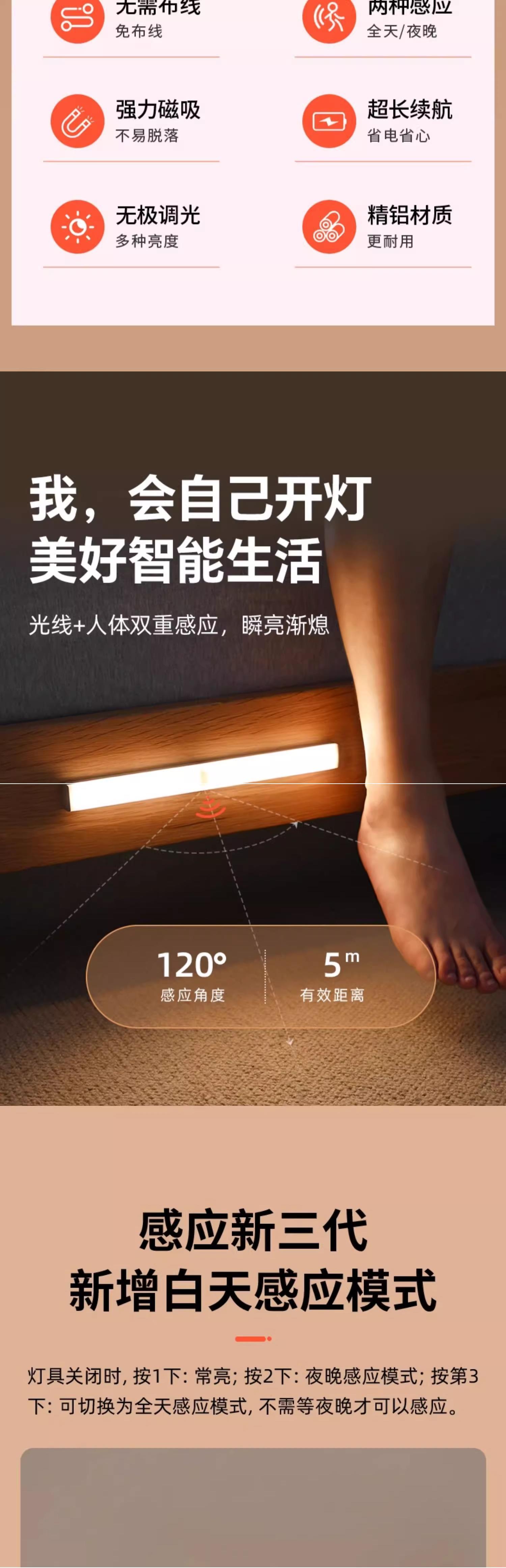 • 200mm 따뜻한 빛 [인체 감지 + 충전 모델 + 조명 제어 + 항상 밝음 + 자기 인력]