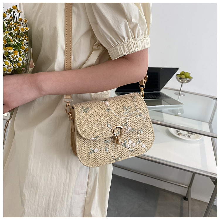 2025년 여름 신상품, 올해 인기 있는 여성용 소형 가방, 트렌디한 패션 숄더 크로스백, 인터넷 연예인 레이스 밀짚 소형 사각형 가방