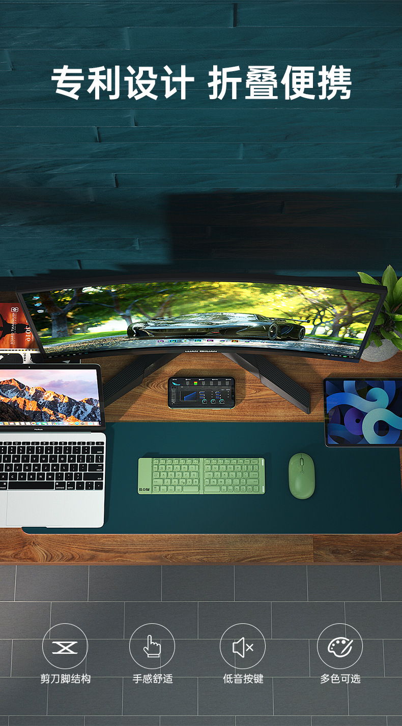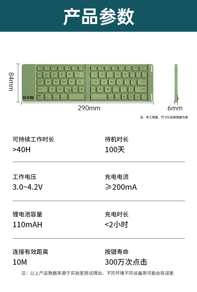 BOW Hangshi HB022A 초박형 접이식 블루투스 키보드 충전식 휴대용 사무용 미니 범용 접이식 키보드