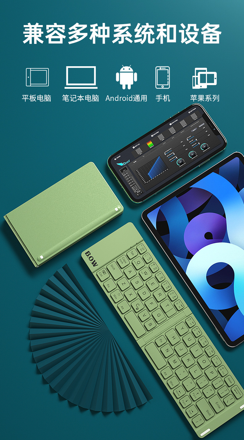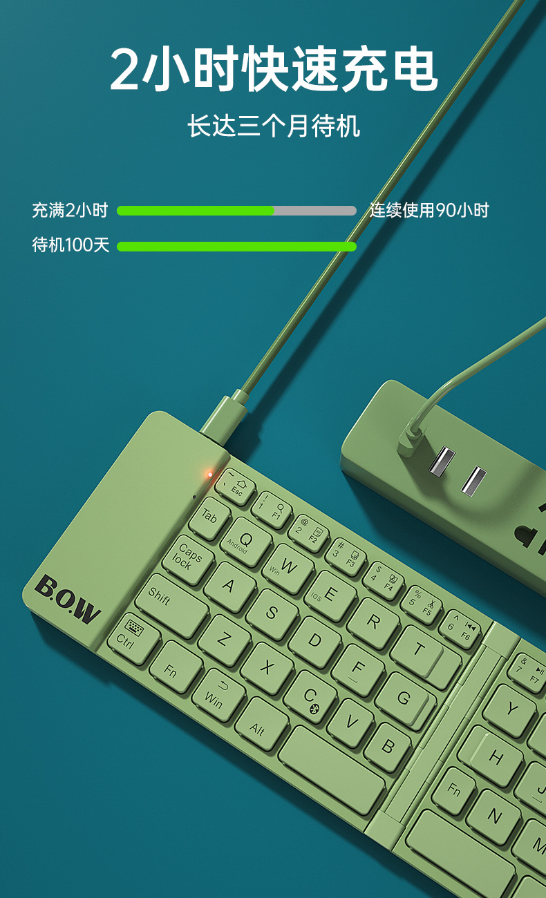 BOW Hangshi HB022A 초박형 접이식 블루투스 키보드 충전식 휴대용 사무용 미니 범용 접이식 키보드스토어 가기
