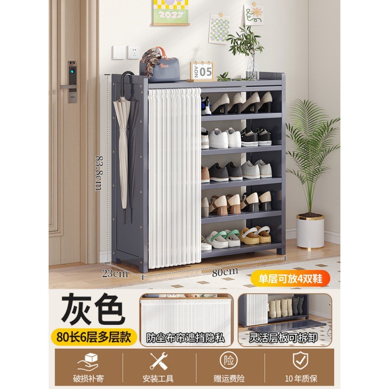 • 그레이 80장 6단 다층 신발장 [문화이트 거즈커튼]