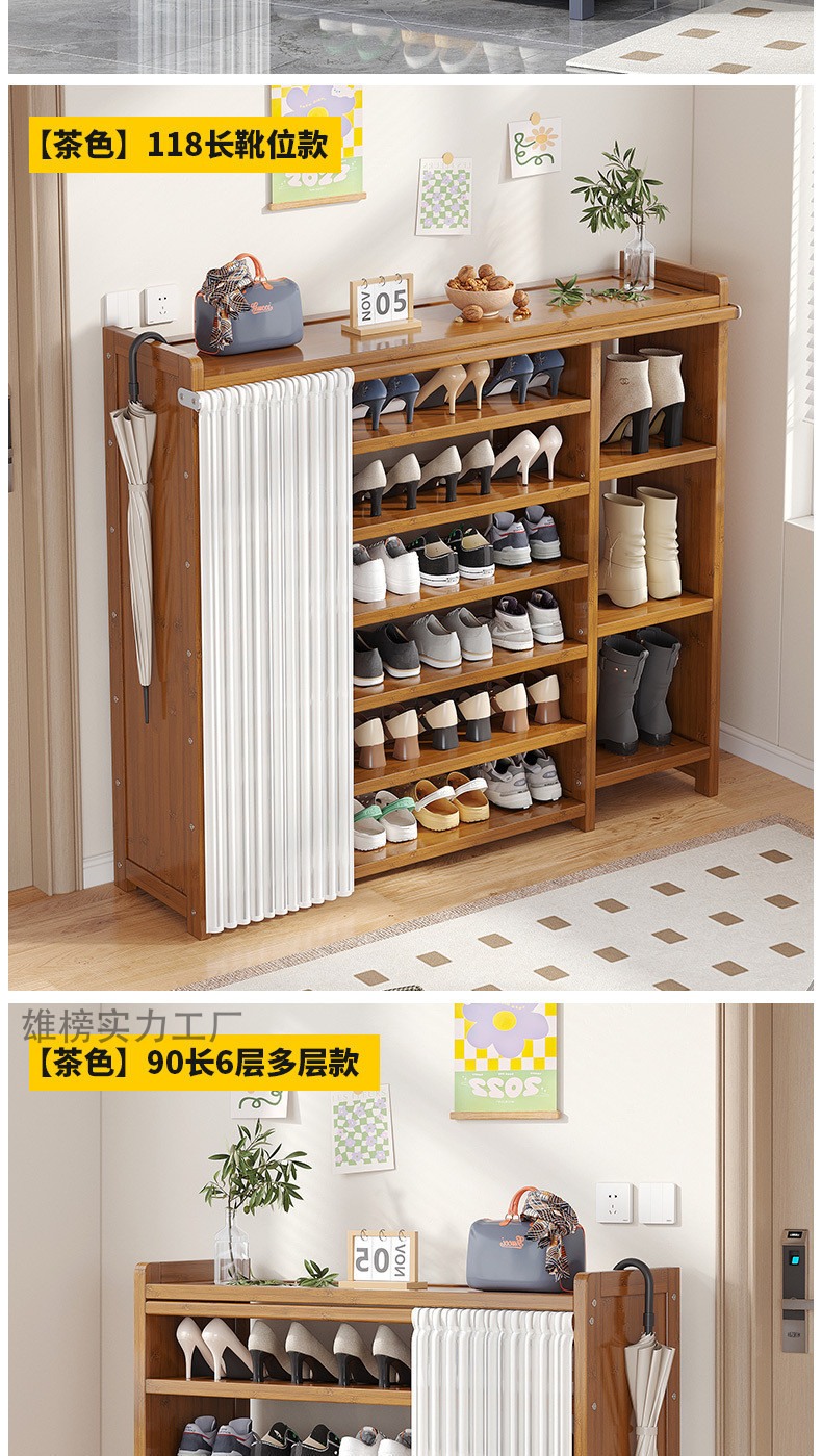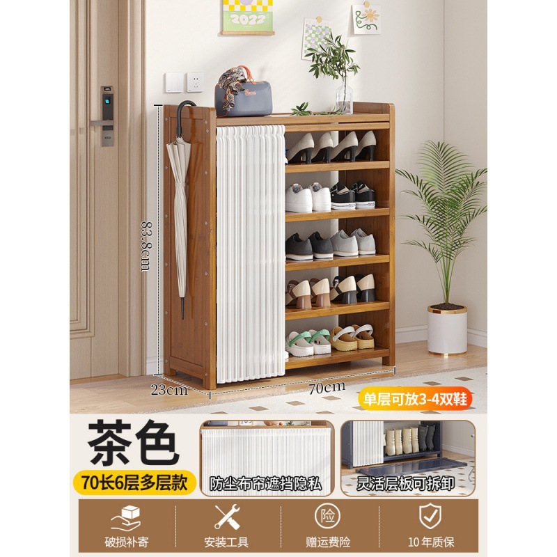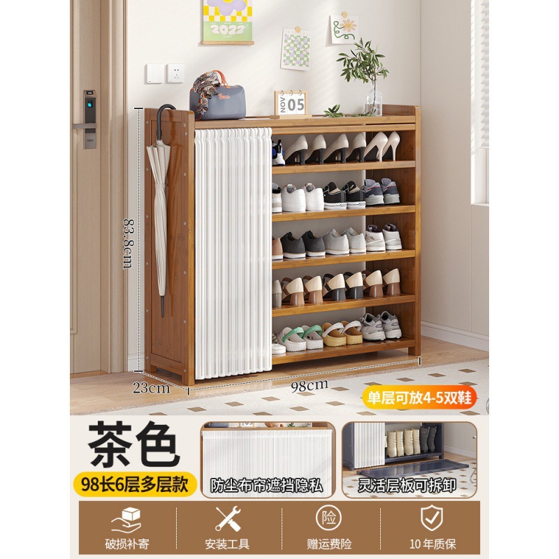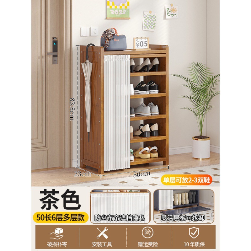 • 브라운 50장 6단 다층 신발장 [문화이트 거즈커튼]