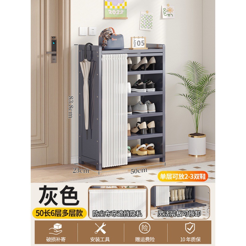 • 그레이 50장 6단 다층 신발장 [문화이트 거즈커튼]