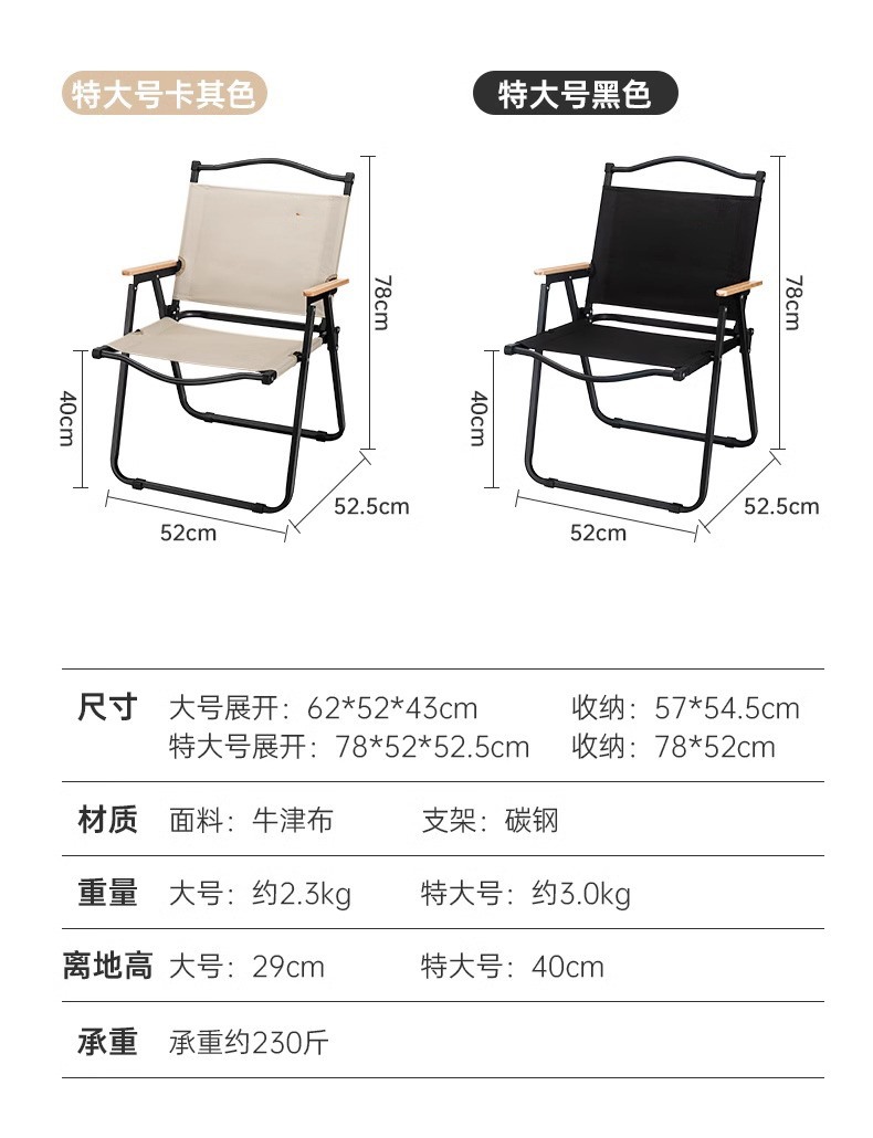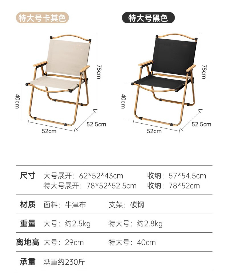• [특대형] 카키 (탄소강 블랙 프레임-원목 팔걸이)