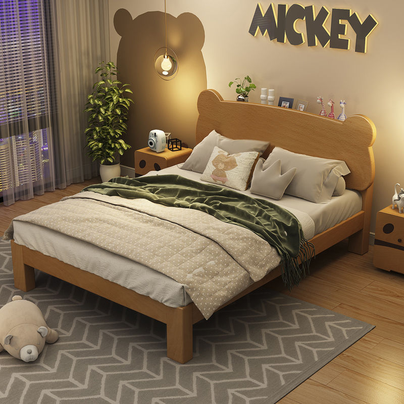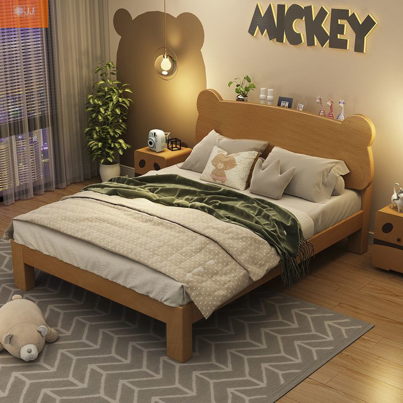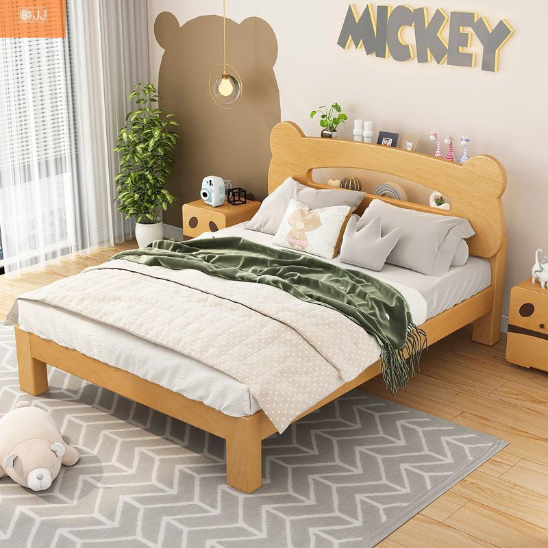 수입 너도밤나무 원목 침대, 2인용 침대 1.35m 싱글 침대 1.2m 어린이 침대 1.5m 야광 침대 무소음 침대