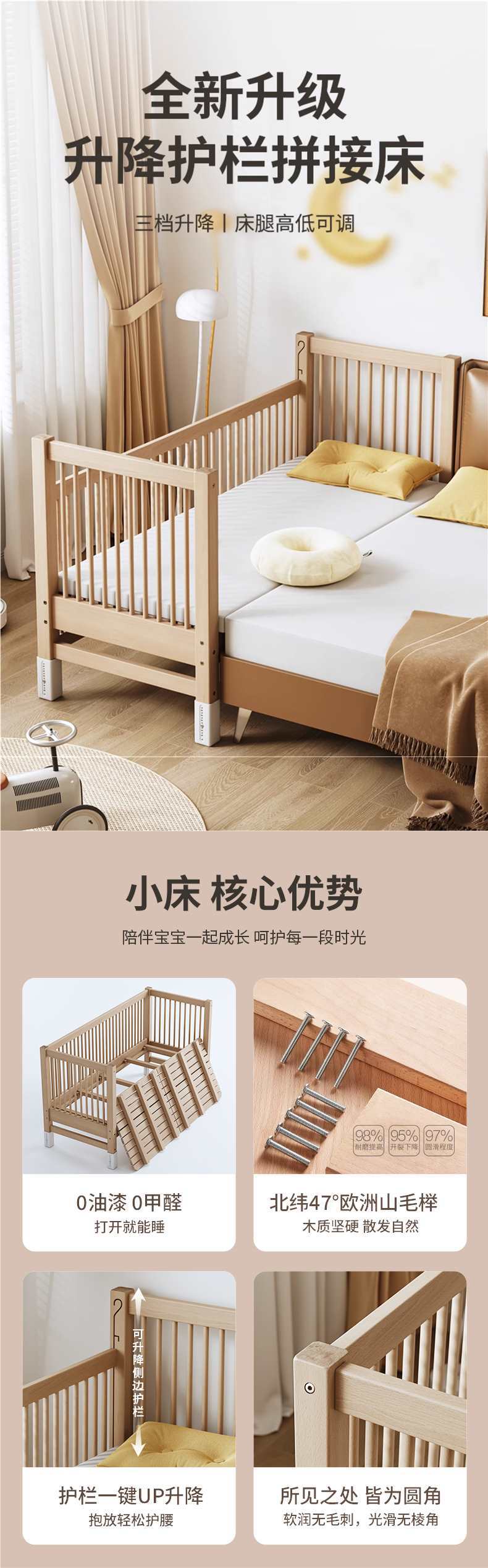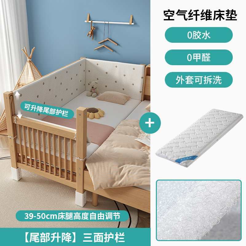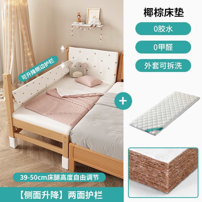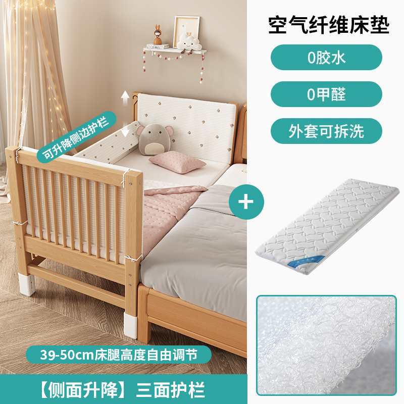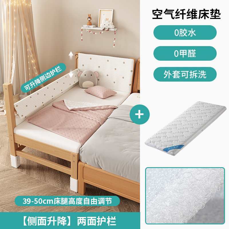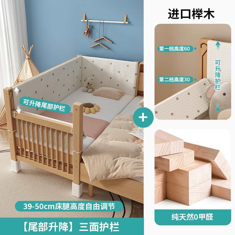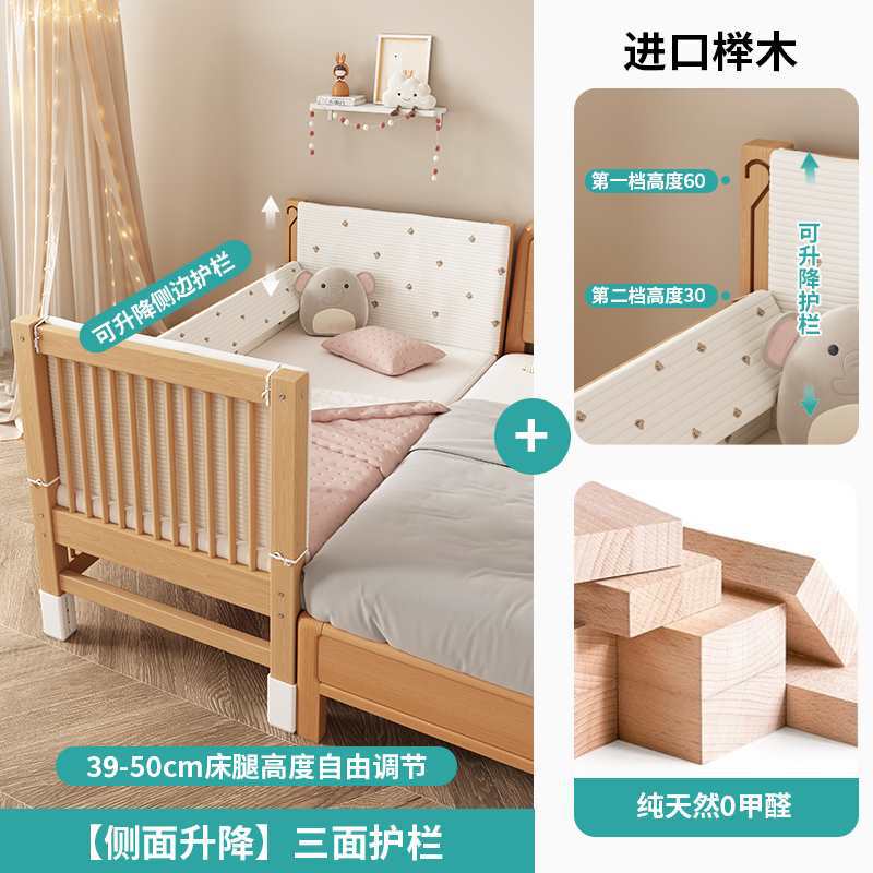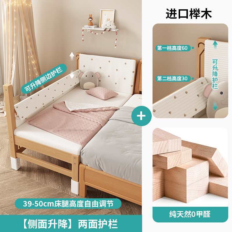 가드레일이 있는 너도밤나무 리프트 어린이용 침대 접합 침대 아기 대형 침대 침대 옆 확장 아기 침대 단단한 나무 유아용 침대