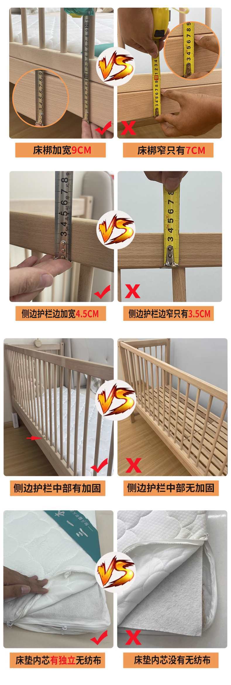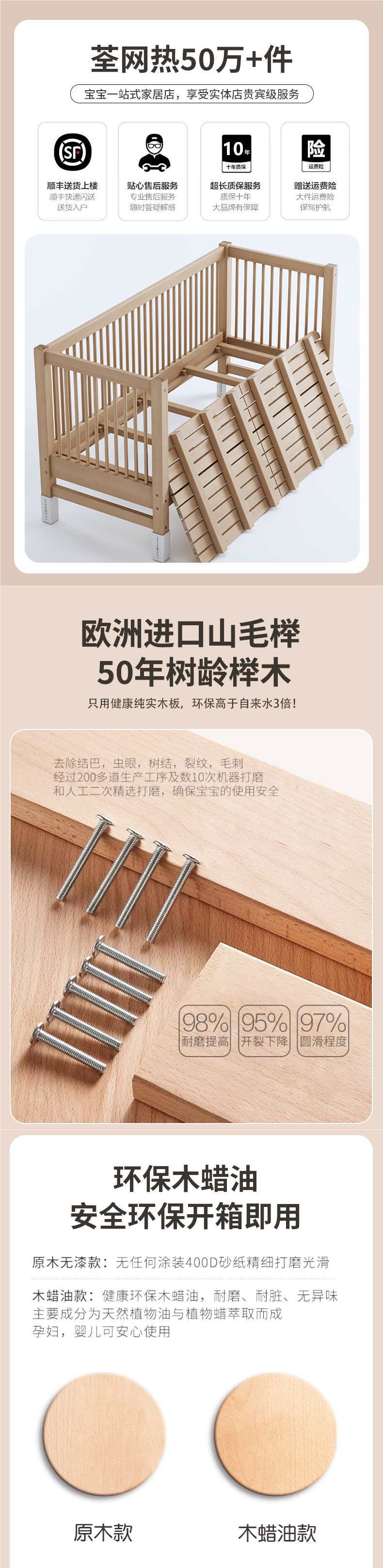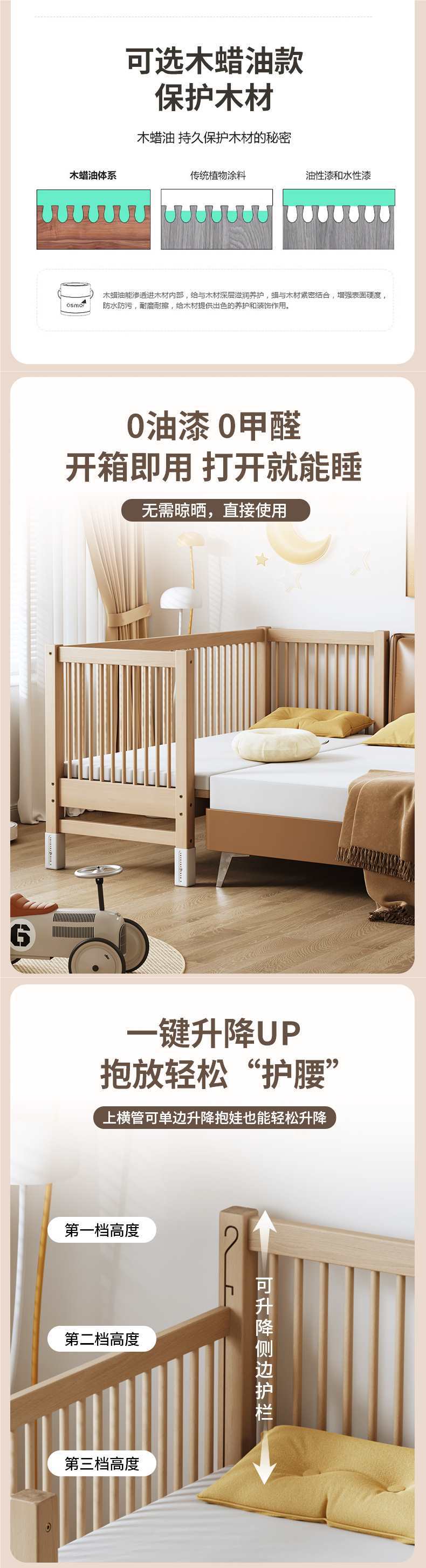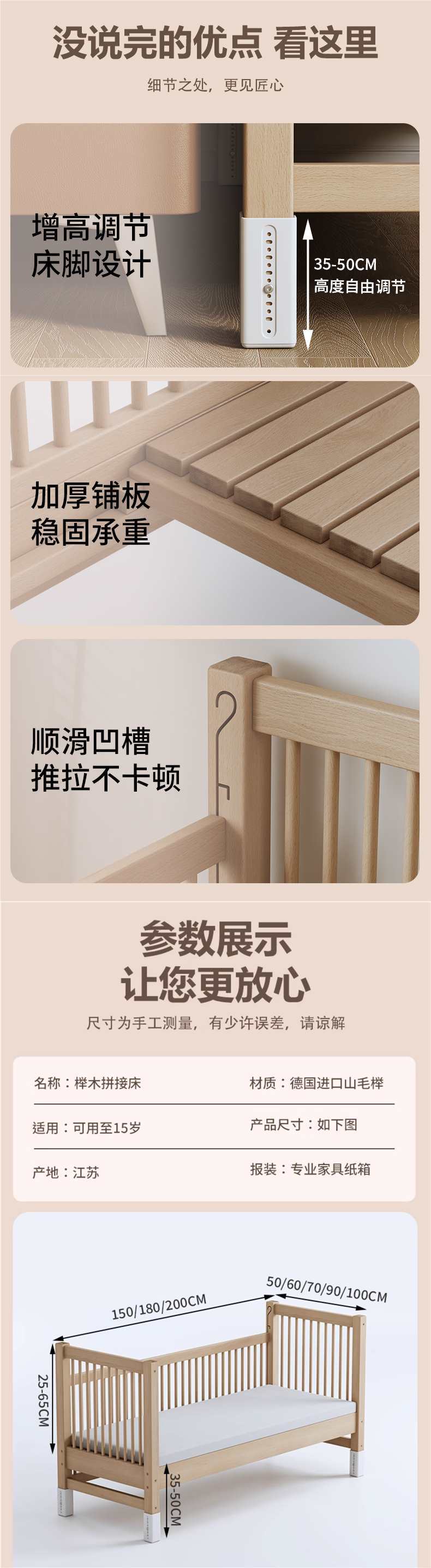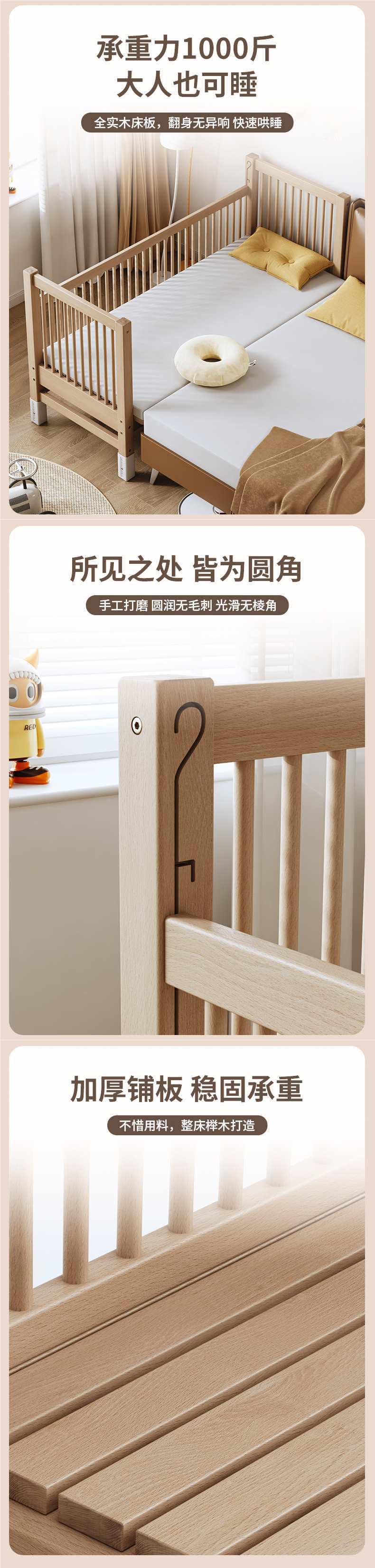 가드레일이 있는 너도밤나무 리프트 어린이용 침대 접합 침대 아기 대형 침대 침대 옆 확장 아기 침대 단단한 나무 유아용 침대
