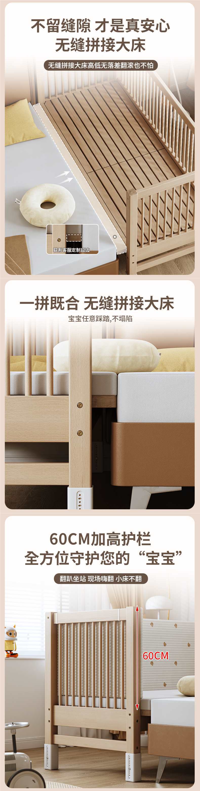 가드레일이 있는 너도밤나무 리프트 어린이용 침대 접합 침대 아기 대형 침대 침대 옆 확장 아기 침대 단단한 나무 유아용 침대스토어 가기