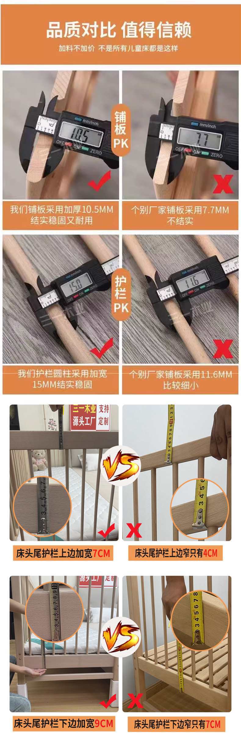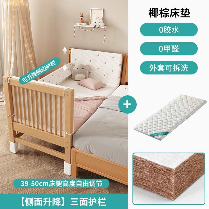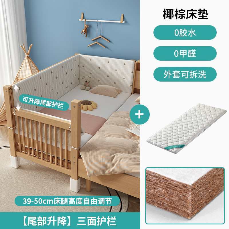 • (사이드 리프트) 삼면 가드레일 + 5cm 코코넛 야자 매트리스 + A급 순면 침대 서라운더