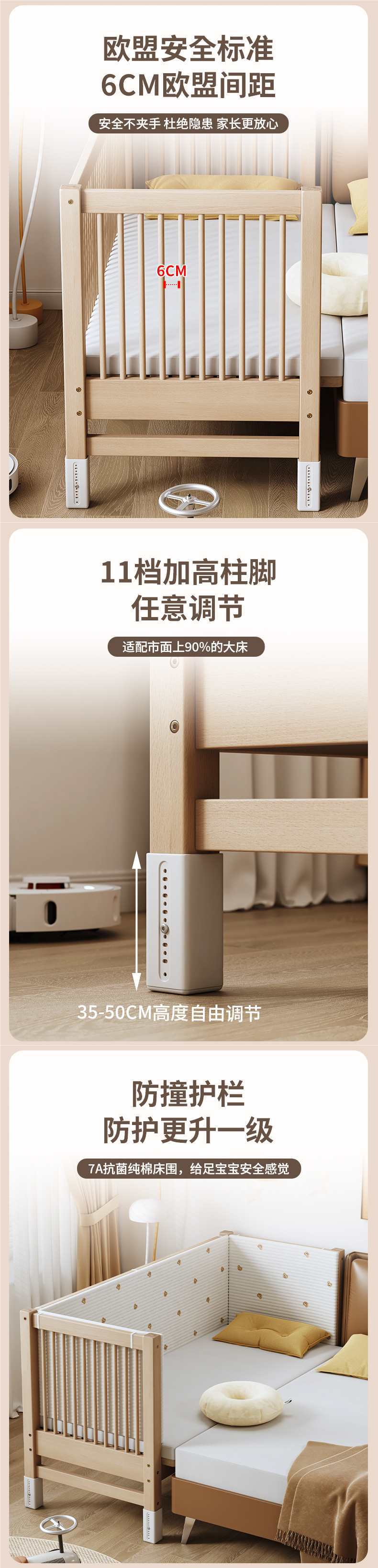 • (사이드 리프트) 삼면 가드레일 + 6cm 코코넛 브라운 라텍스 매트리스 + A급 순면 침대 서라운더