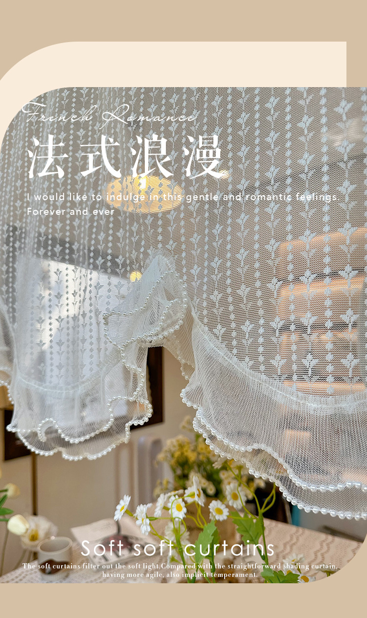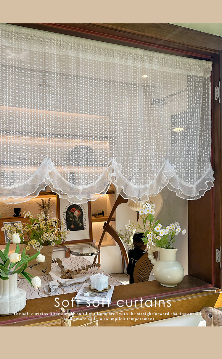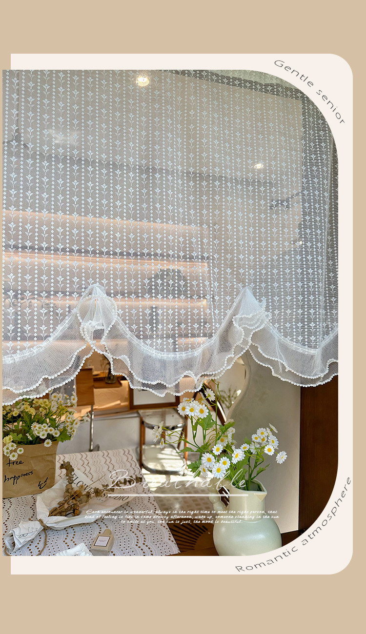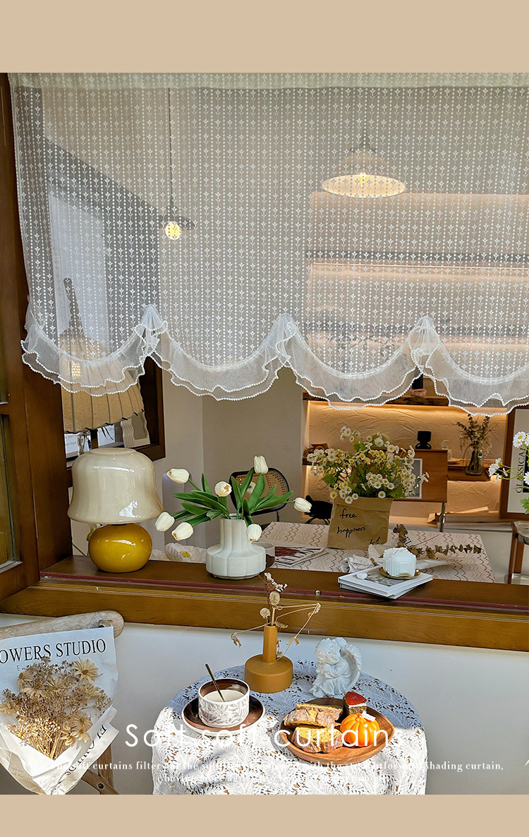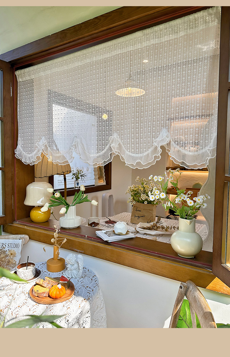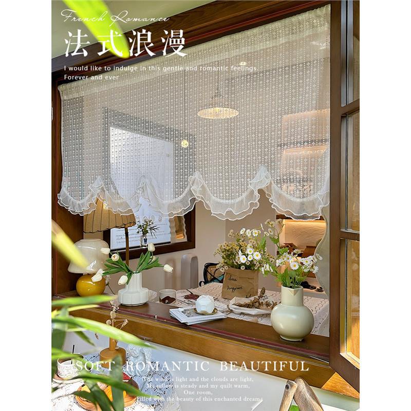 프렌치 화이트 로맨틱 레이스 커튼, 벨크로 커튼, 한국 전원풍 유럽식 하프 커튼, 주방 짧은 커튼, 거즈 커튼