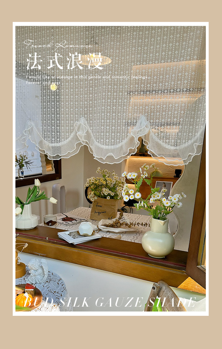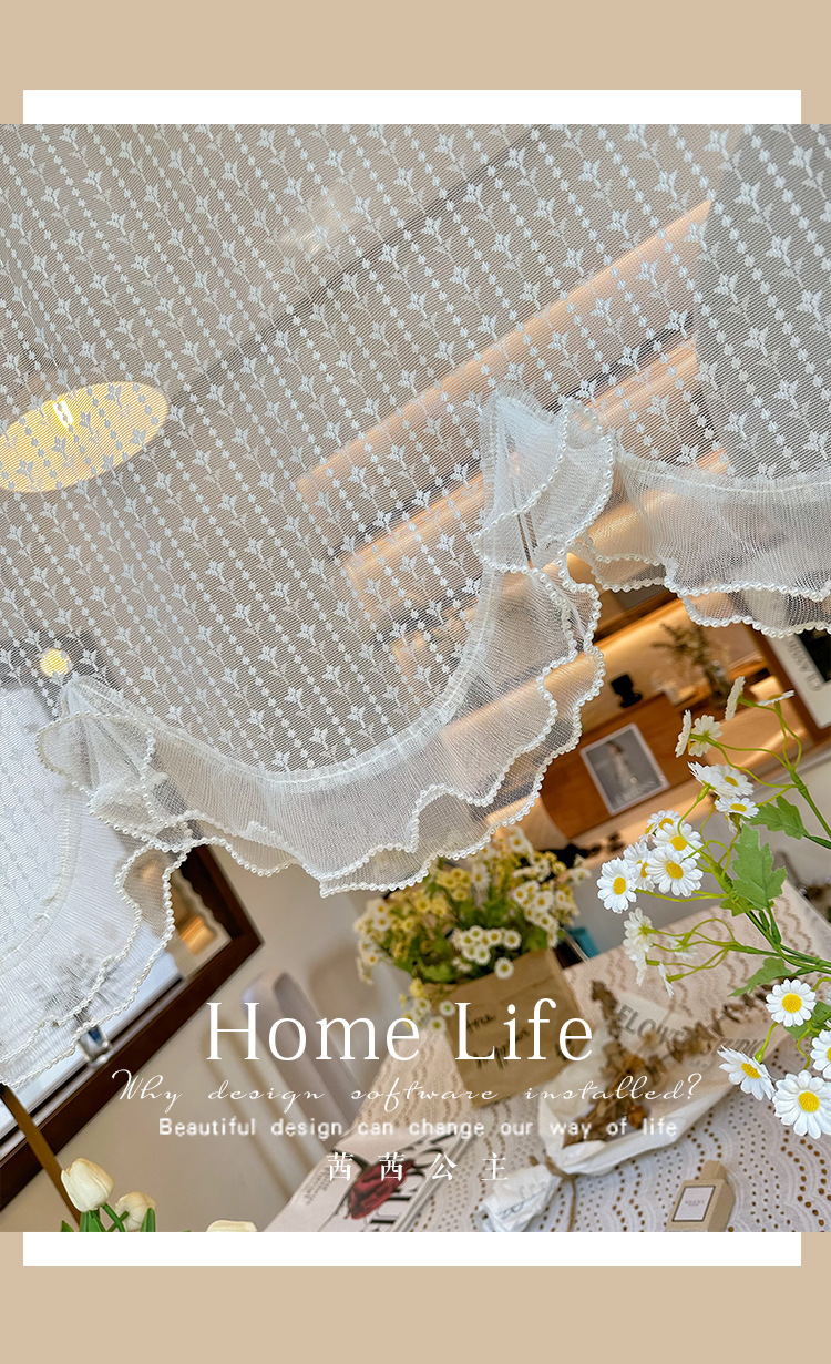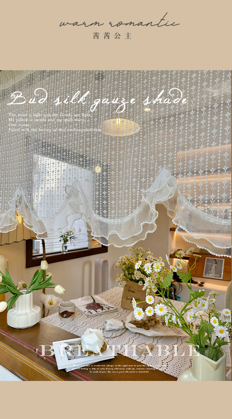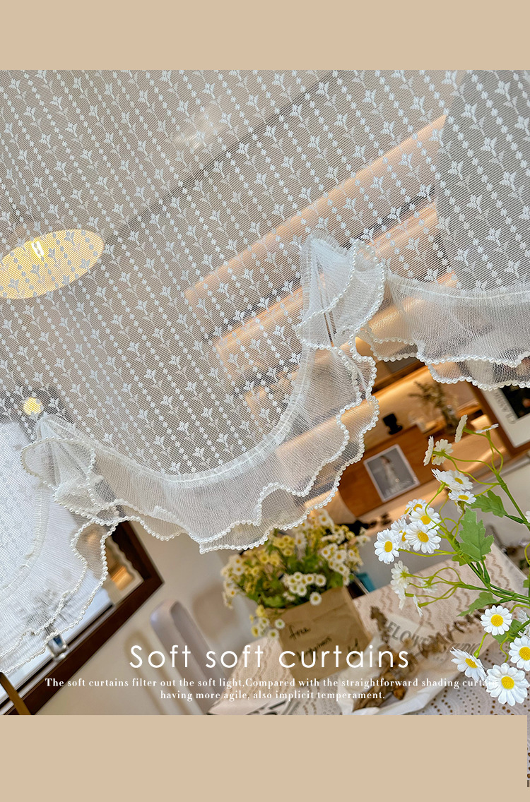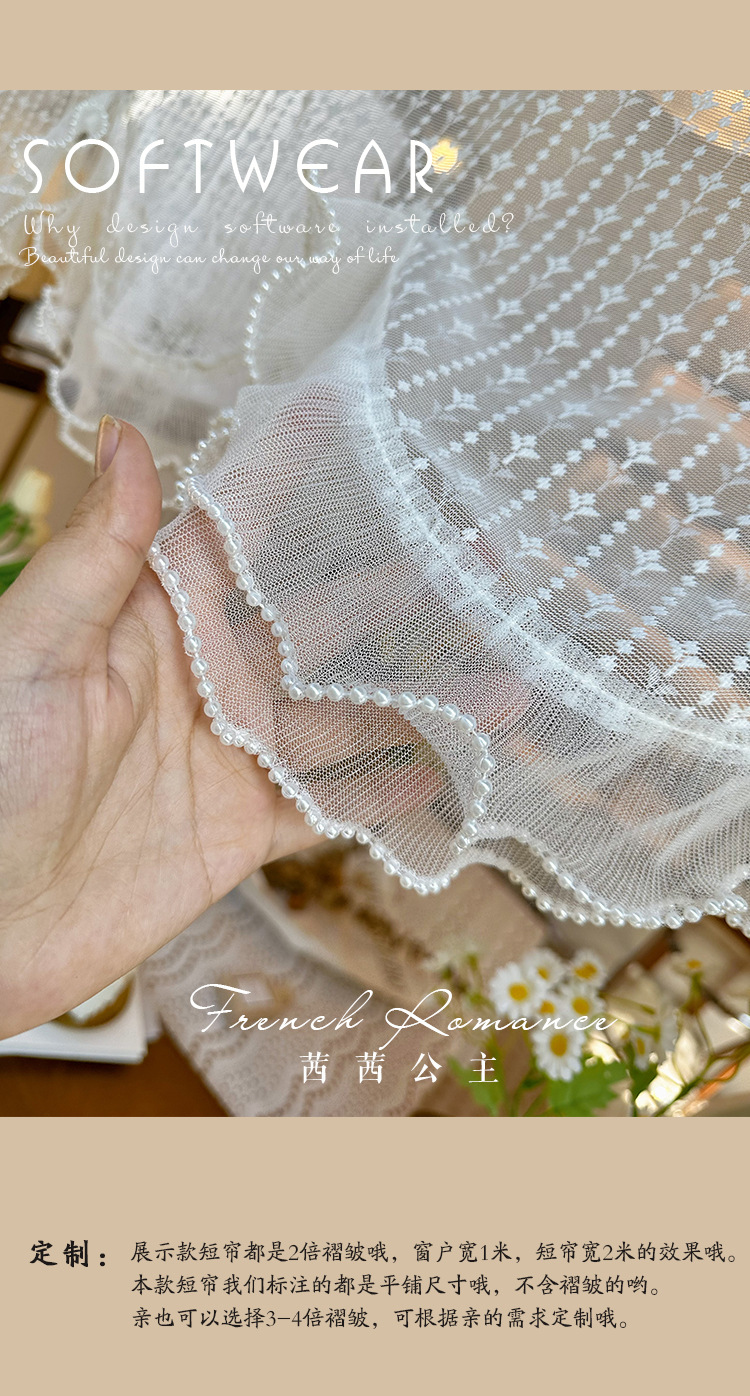 프렌치 화이트 로맨틱 레이스 커튼, 벨크로 커튼, 한국 전원풍 유럽식 하프 커튼, 주방 짧은 커튼, 거즈 커튼