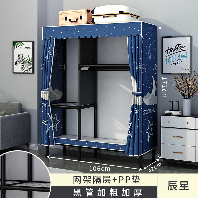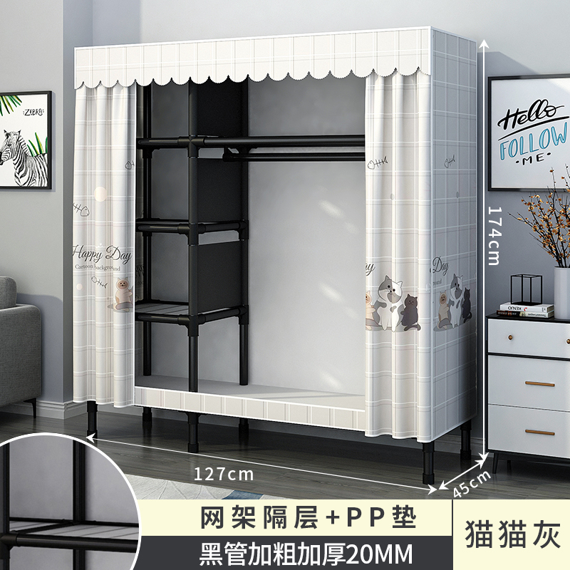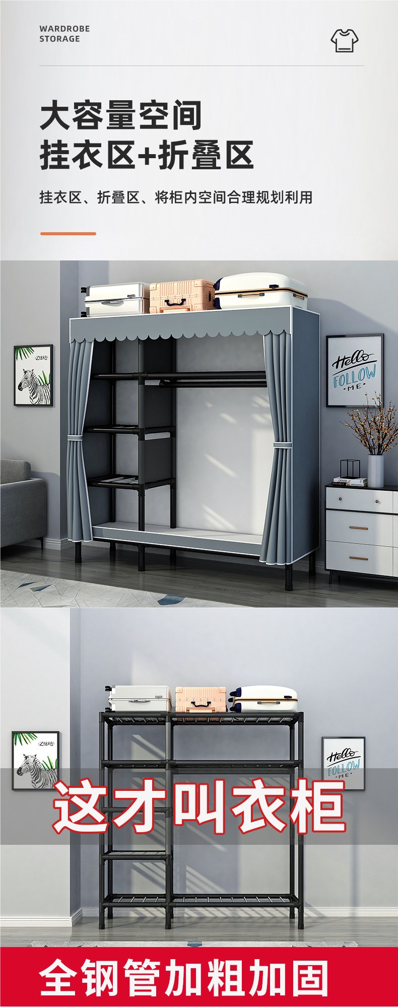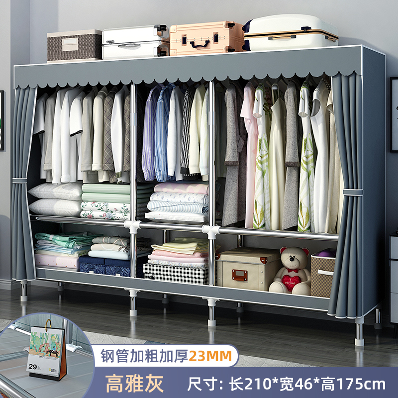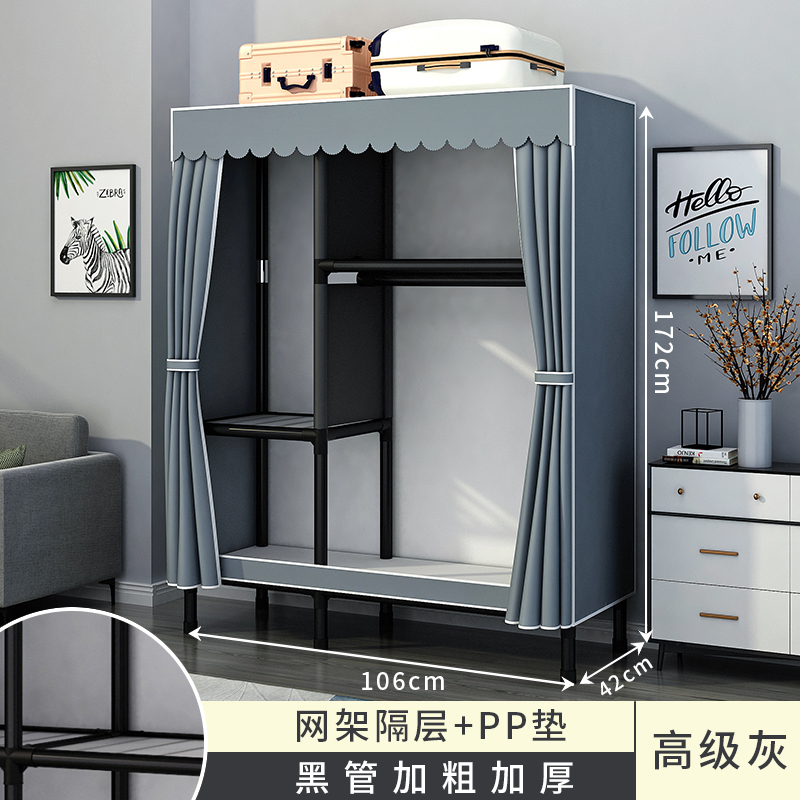 가정용 침실용 간이 옷장 강철 프레임 두꺼운 수납 천 옷장 임대 주택 조립 천 걸이 옷장스토어 가기