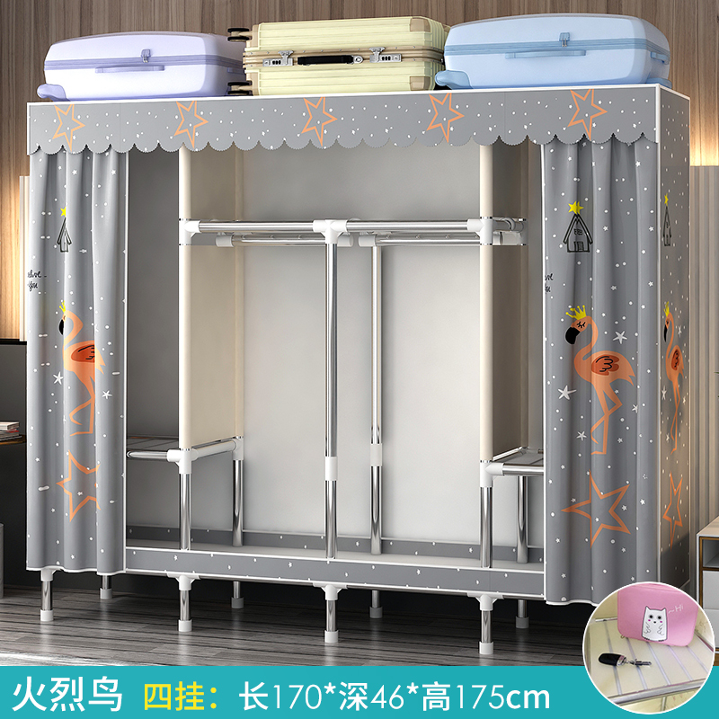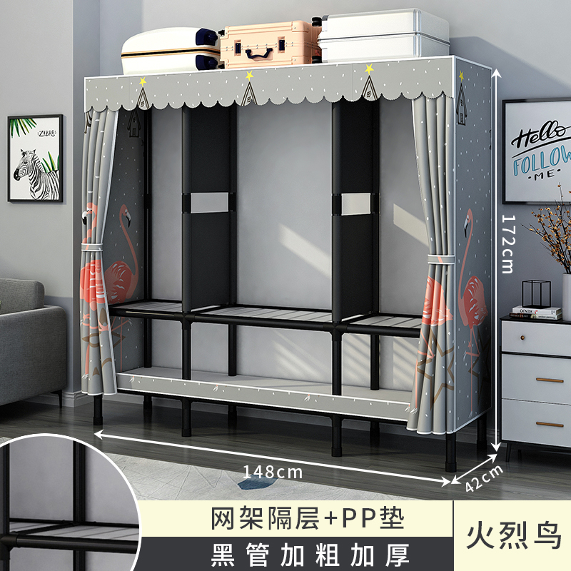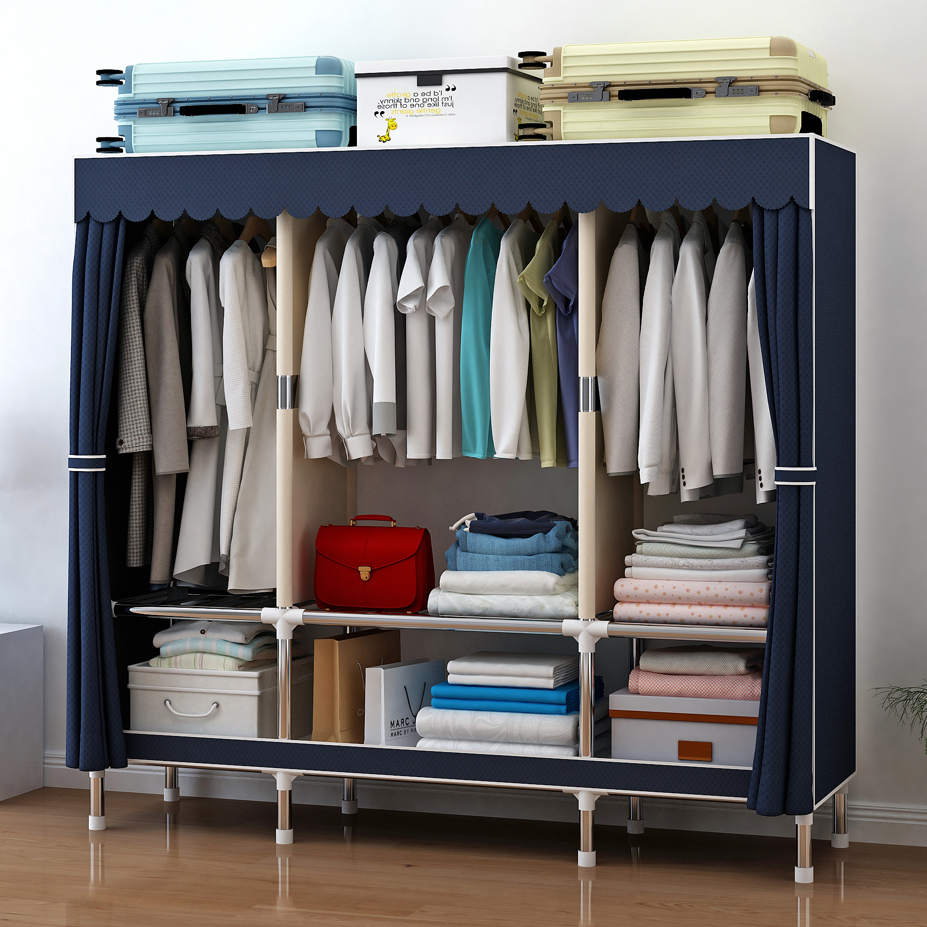 가정용 침실용 간이 옷장 강철 프레임 두꺼운 수납 천 옷장 임대 주택 조립 천 걸이 옷장