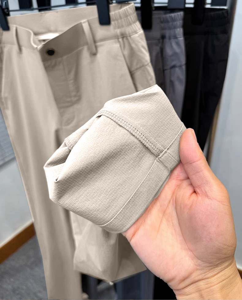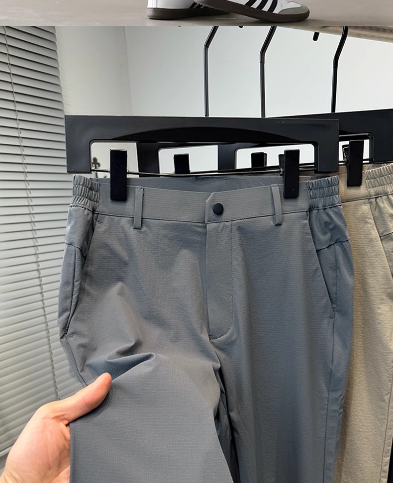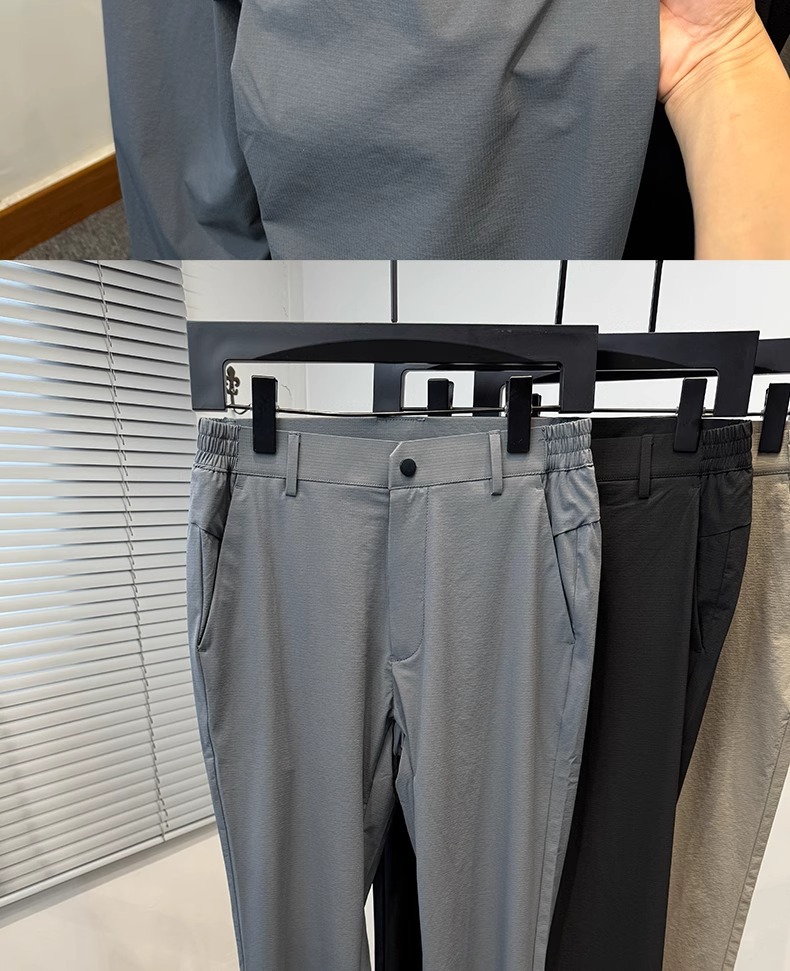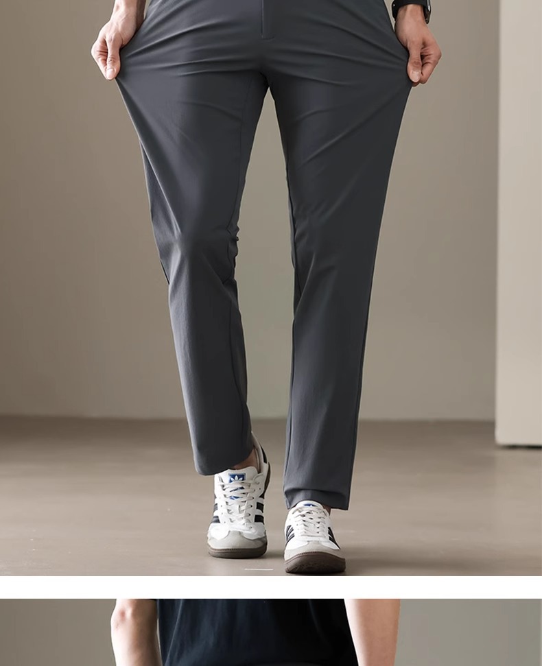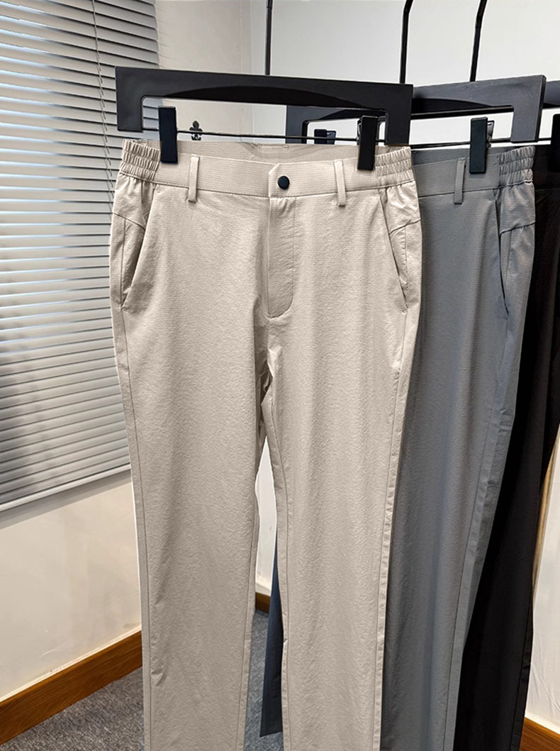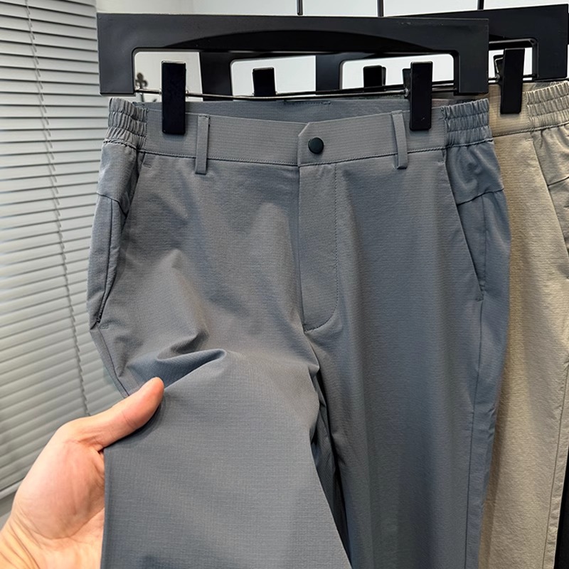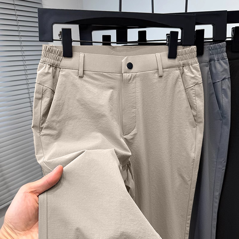 시원한 얼음 실크 캐주얼 바지 남성 바지 여름 얇은 2025 새로운 느슨한 스트레이트 바지 젊은 및 중년 바지스토어 가기
