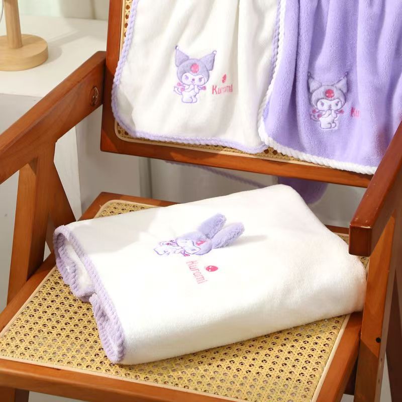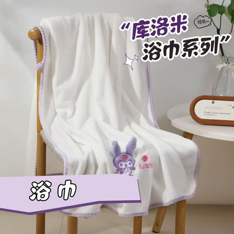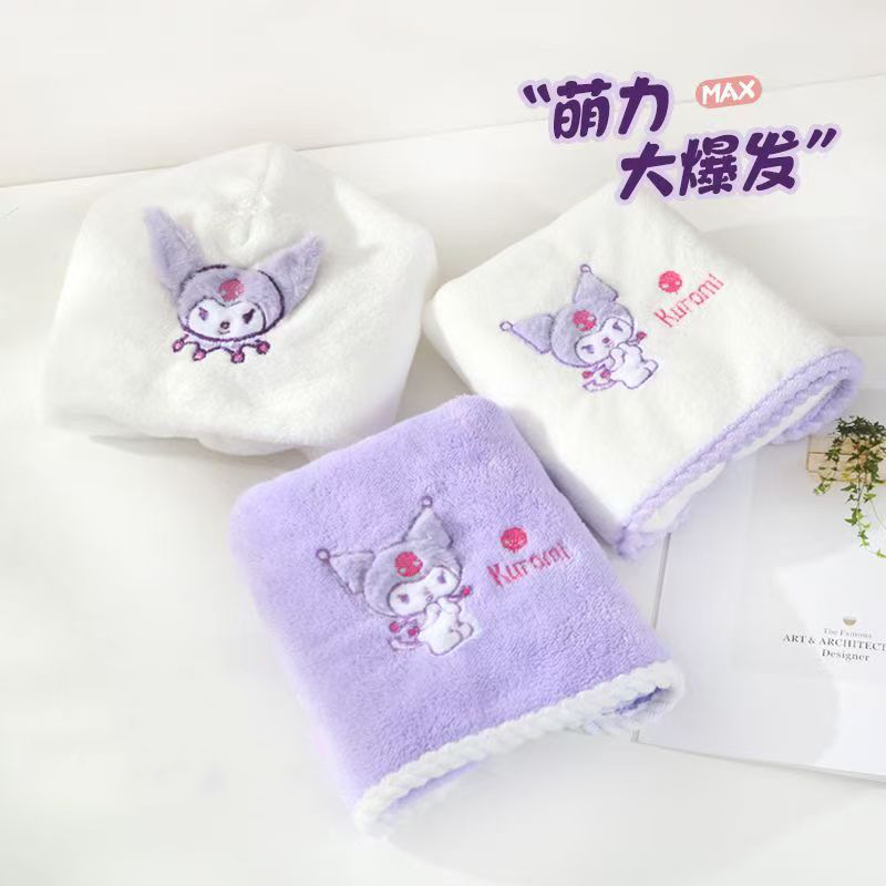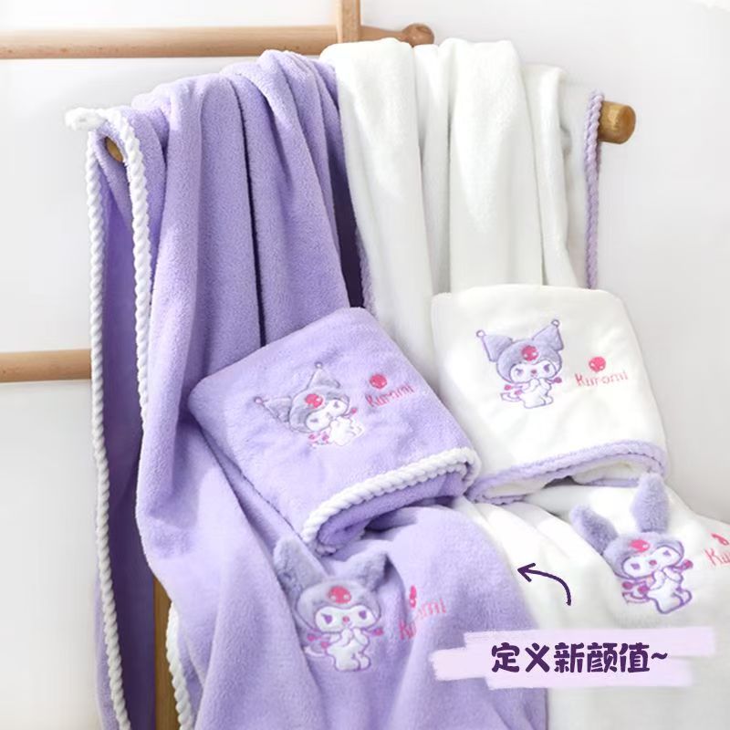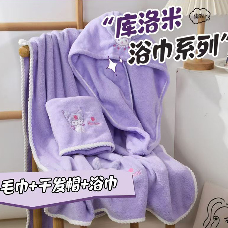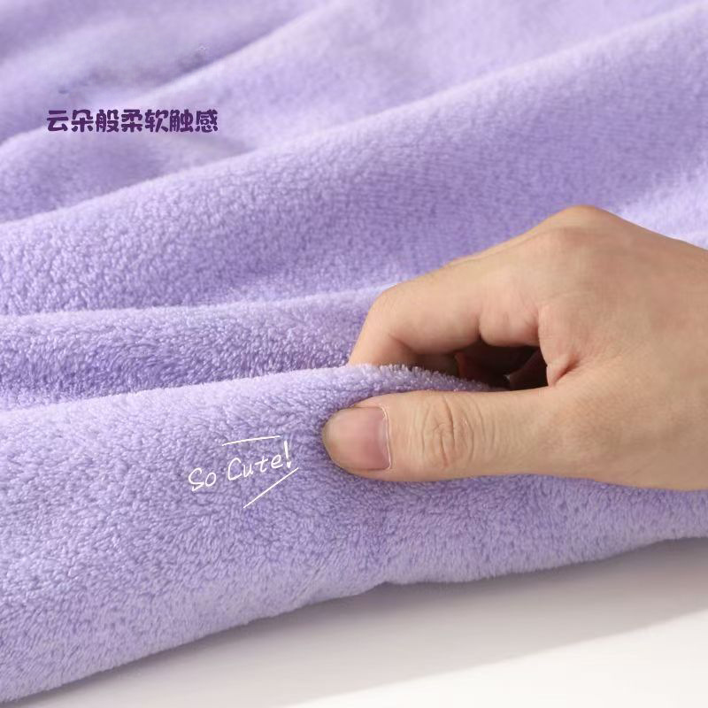 보라색 만화 목욕 타월, 산호 벨벳 귀여운 자수 타월 세트, 두꺼운 속건성 흡수성 기숙사용 헤어 드라이어캡, 해외배송스토어 가기