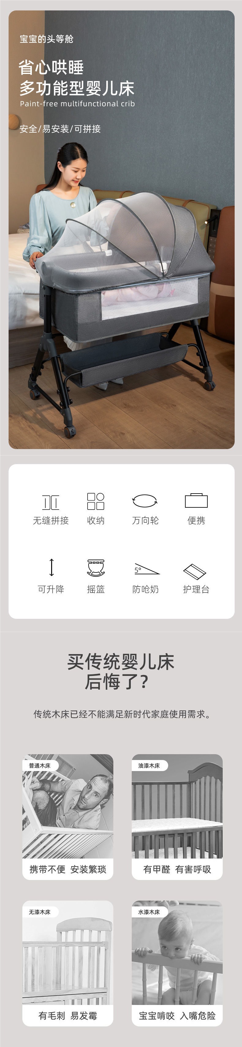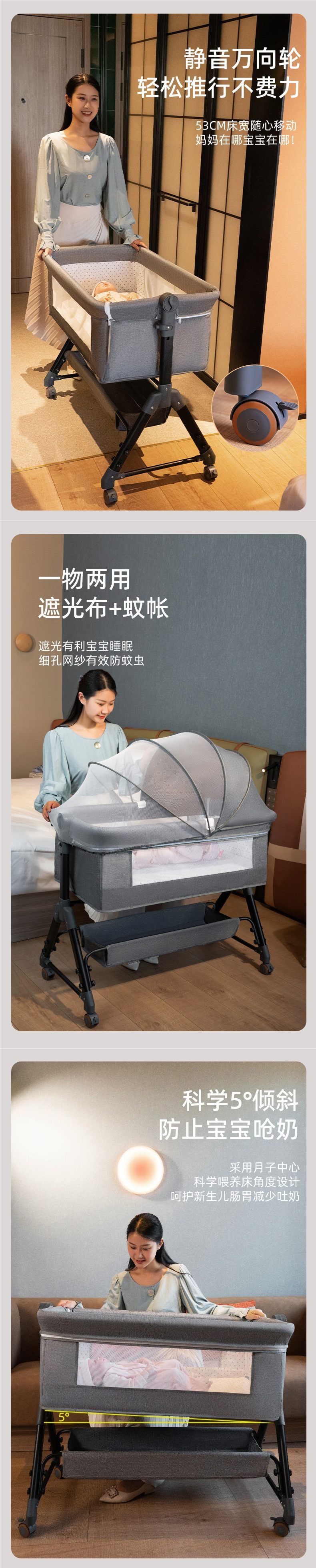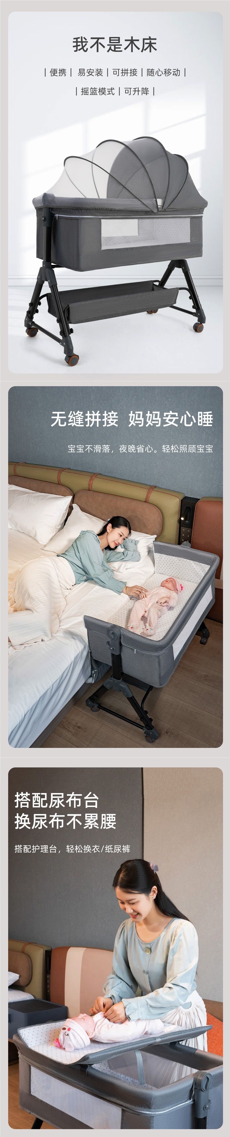 유아용 침대 접합 대형 침대 아기 흔들 침대 bb 어린이 침대 요람 침대 다기능 모바일 접이식 무역스토어 가기