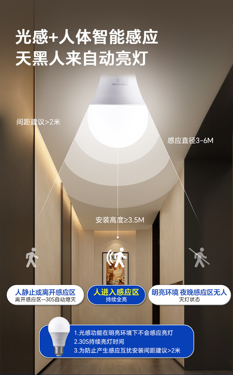Sanxiong 오로라 레이더 센서 전구 led 전구 홈 통로 복도 계단 e27 나사 센서 전구스토어 가기