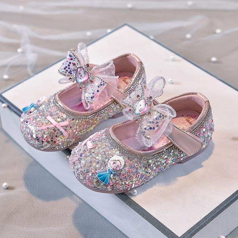 얼음과 눈 소녀의 우정 어린이 공주 신발 엘사 크리스탈 신발 봄과 가을 새로운 부드러운 밑창 어린 소녀 가죽 신발스토어 가기