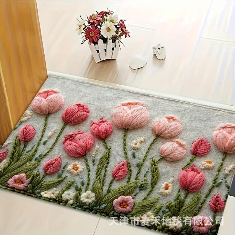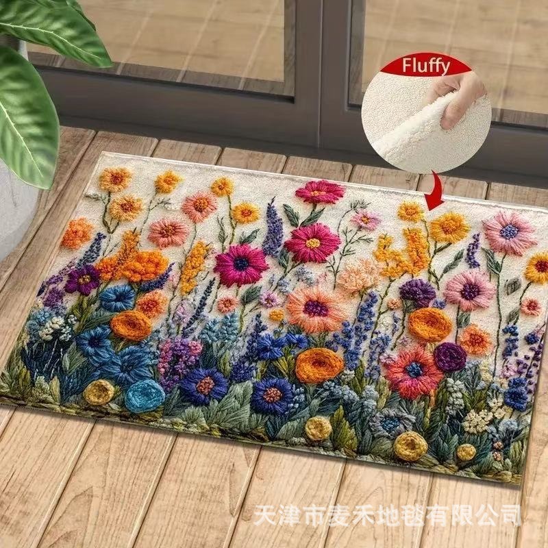 국경 간 3D 입체 꽃 크리스탈 벨벳 바닥 매트 홈 꽃 욕실 흡수성 발 매트 화장실 흡수성 미끄럼 방지 매트