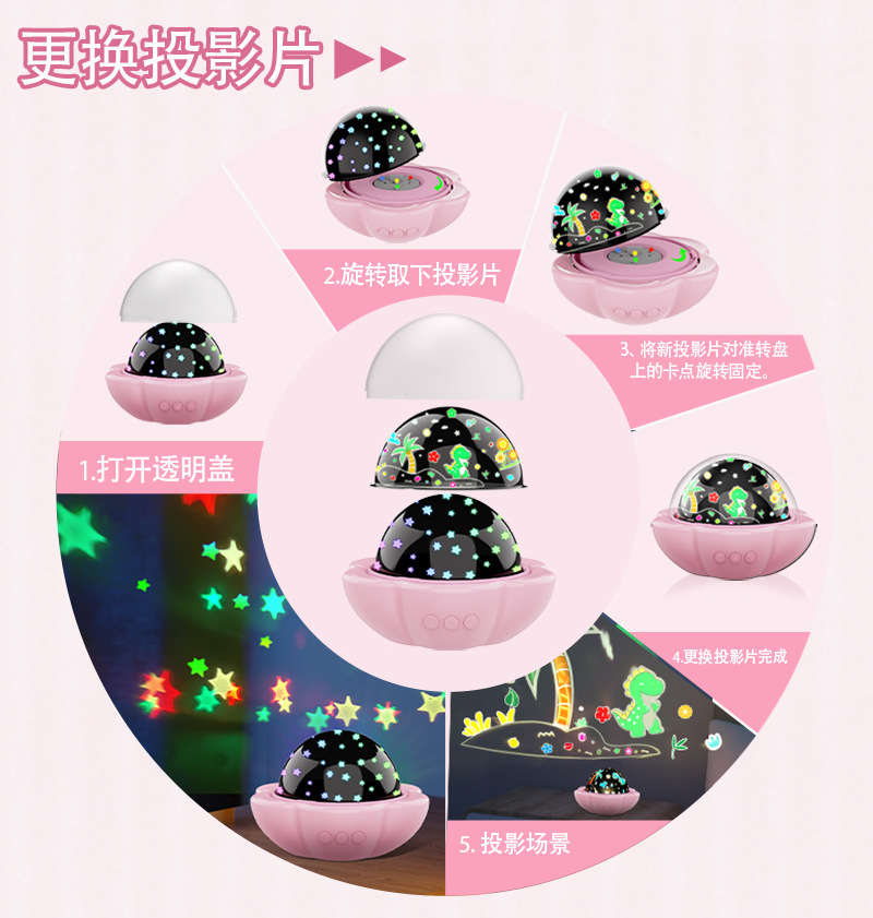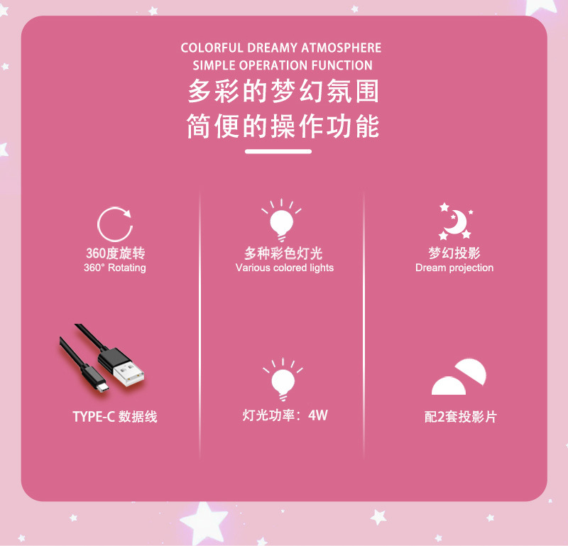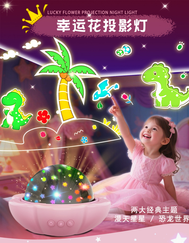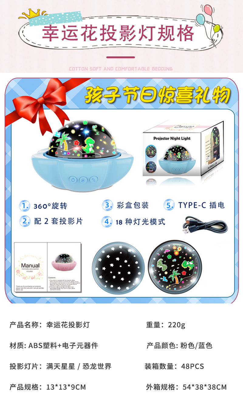 국경 간 행운의 꽃 별이 빛나는 하늘 램프 회전 프로젝션 램프 침실 머리맡 분위기 야간 조명 어린이 선물 공장 직접 판매