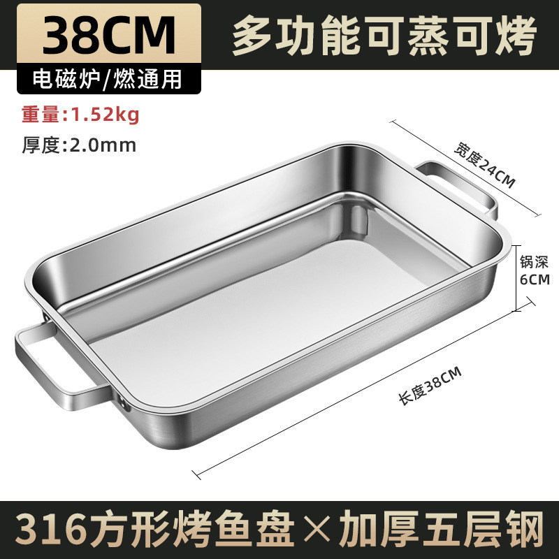 316 스테인레스 스틸 생선 구이 접시 특수 냄비 직사각형 가정용 깊은 접시 상업용 트레이 베이킹 팬 인덕션 쿠커 사용 가능