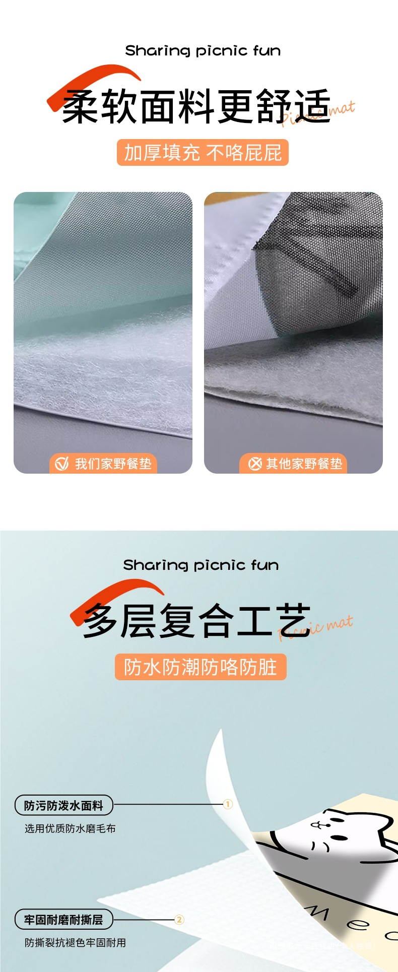 두꺼운 피크닉 매트, 방습 매트, 방수 야외 바닥 매트, 초음파 캠핑 매트, 텐트 매트, 야외 캠핑 매트