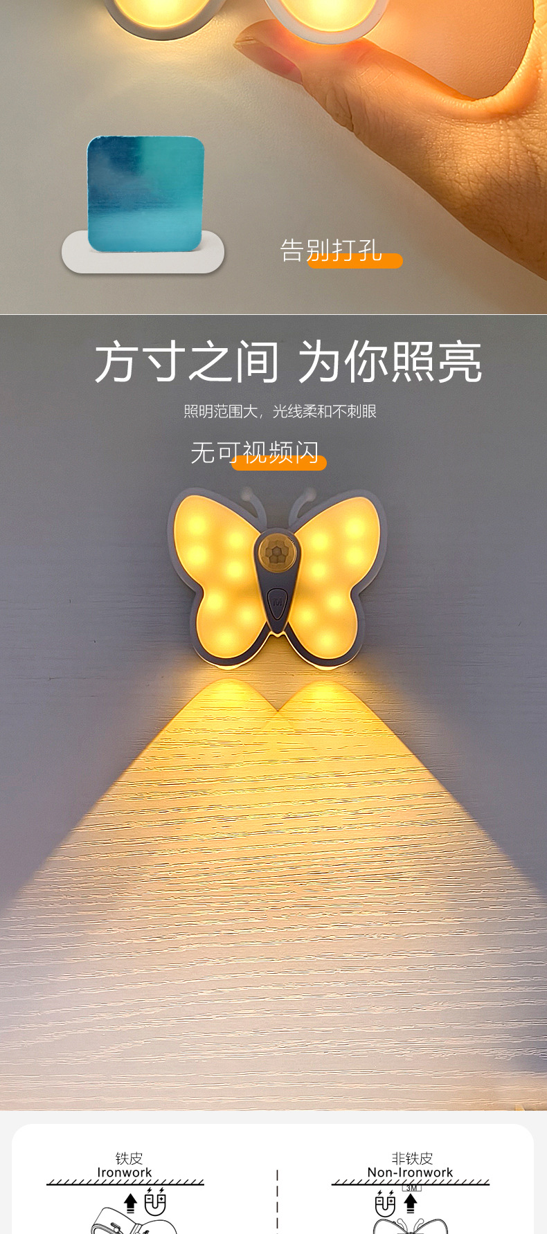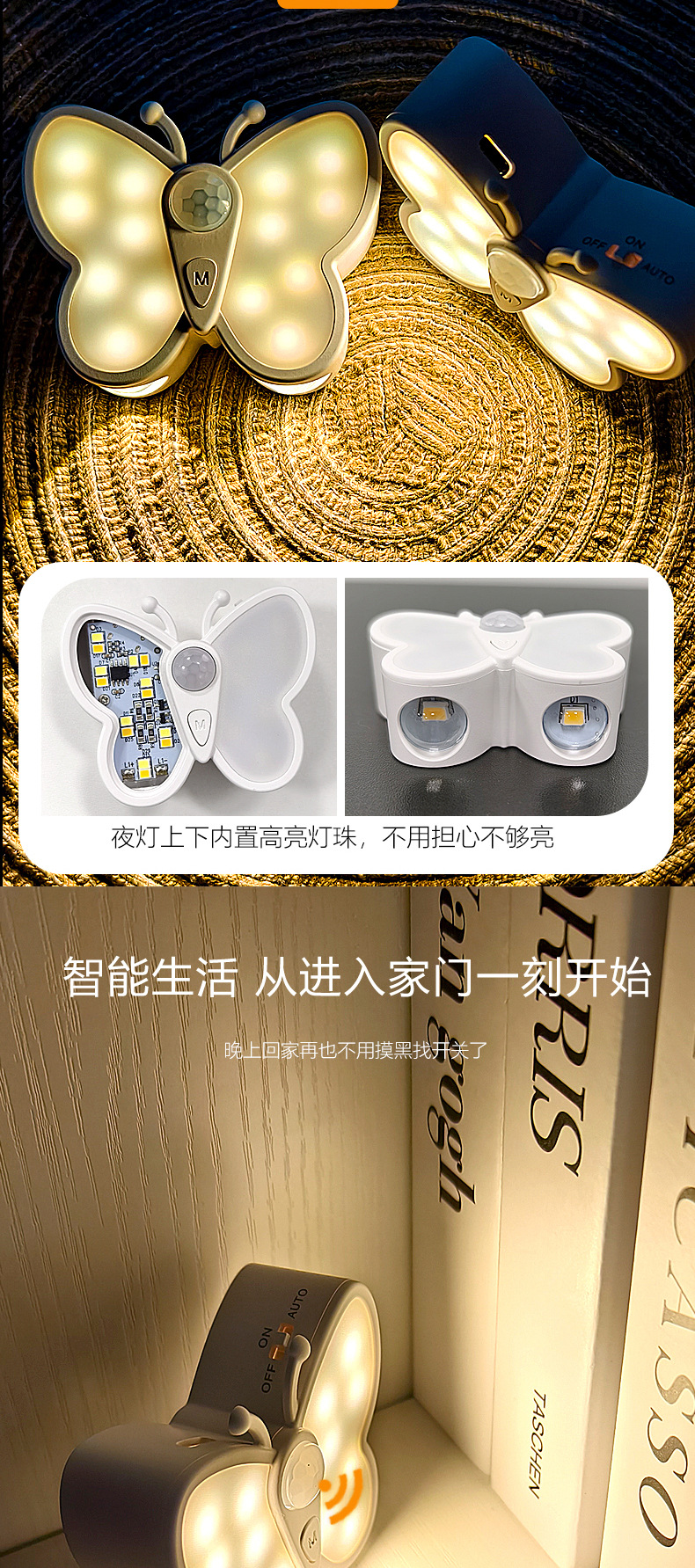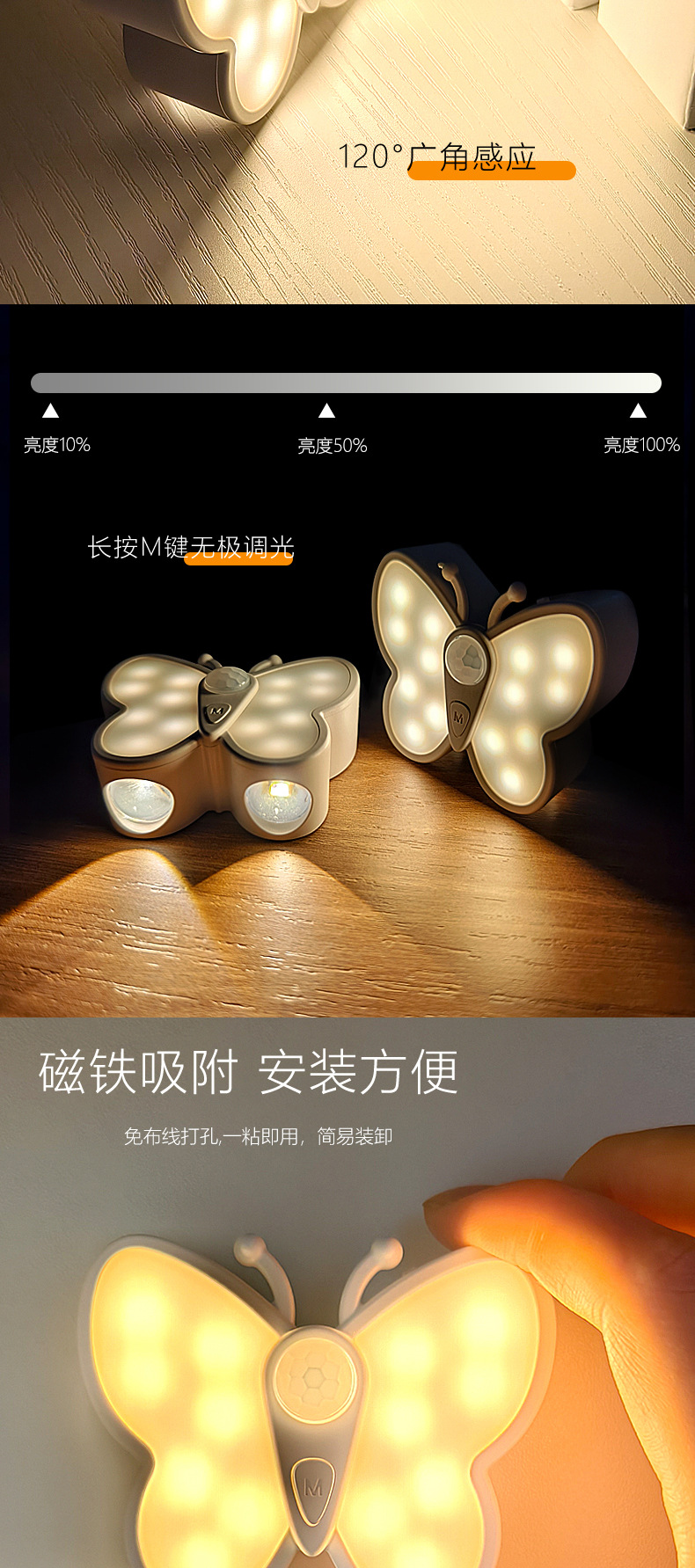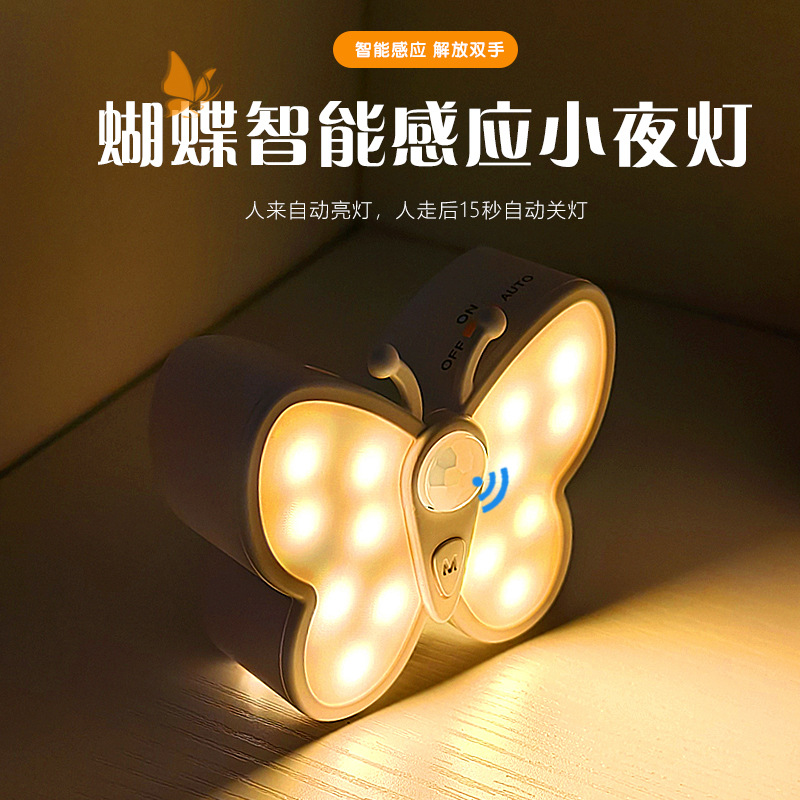 Led 무선 자체 접착 인체 유도 장식 벽 캐비닛 홈 스마트 고양이 눈 분위기 빛 크리 에이 티브 나비 야간 조명