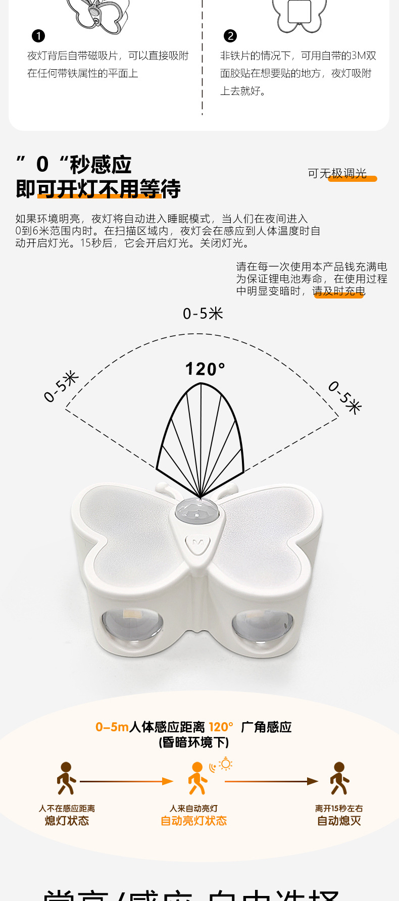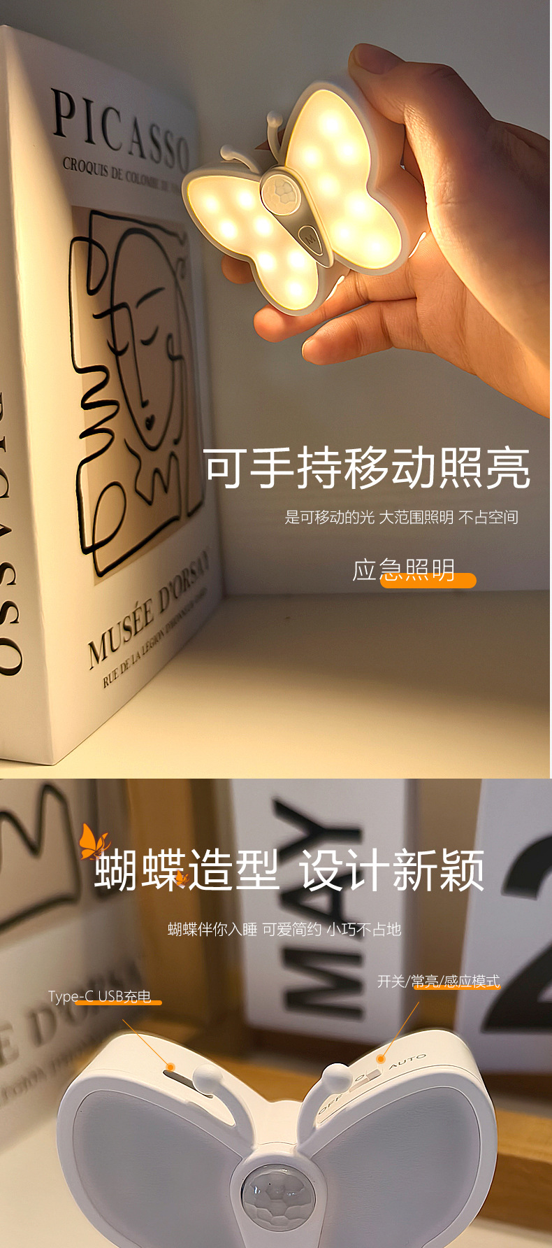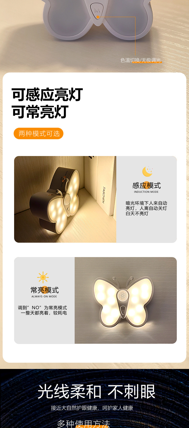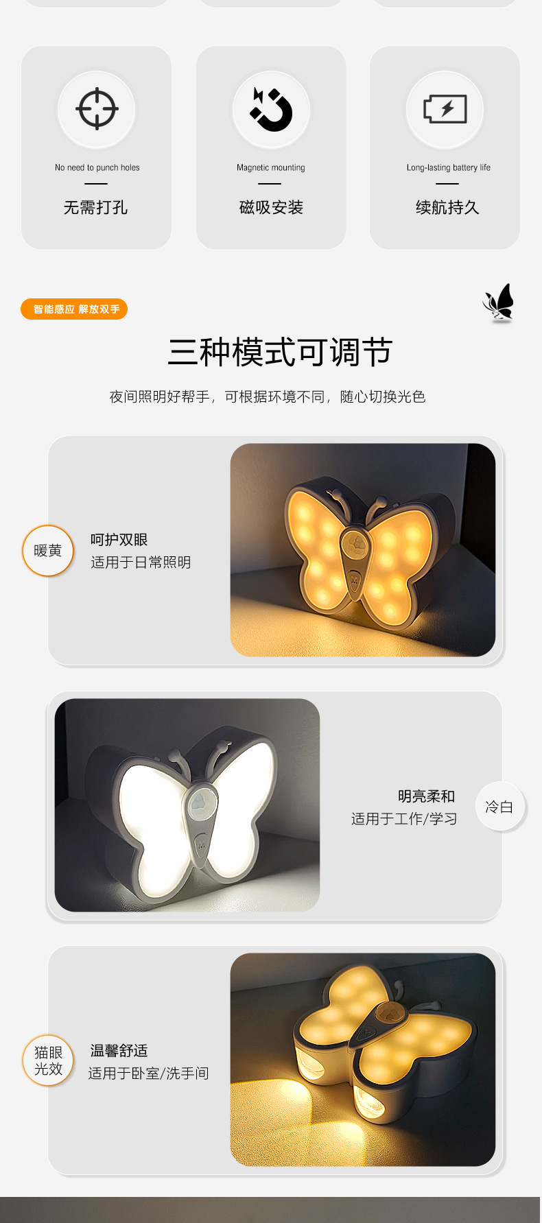 • 나비 야간 조명 - 1200mAh 배터리