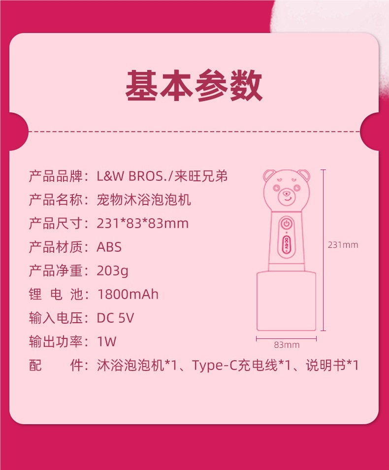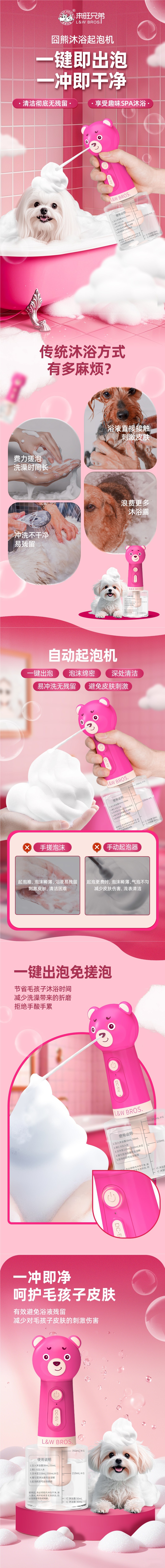 Laiwang Brothers 애완 동물 목욕 거품기 고양이와 개 목욕 샴푸 거품 희석 병 거품 기계 개 목욕