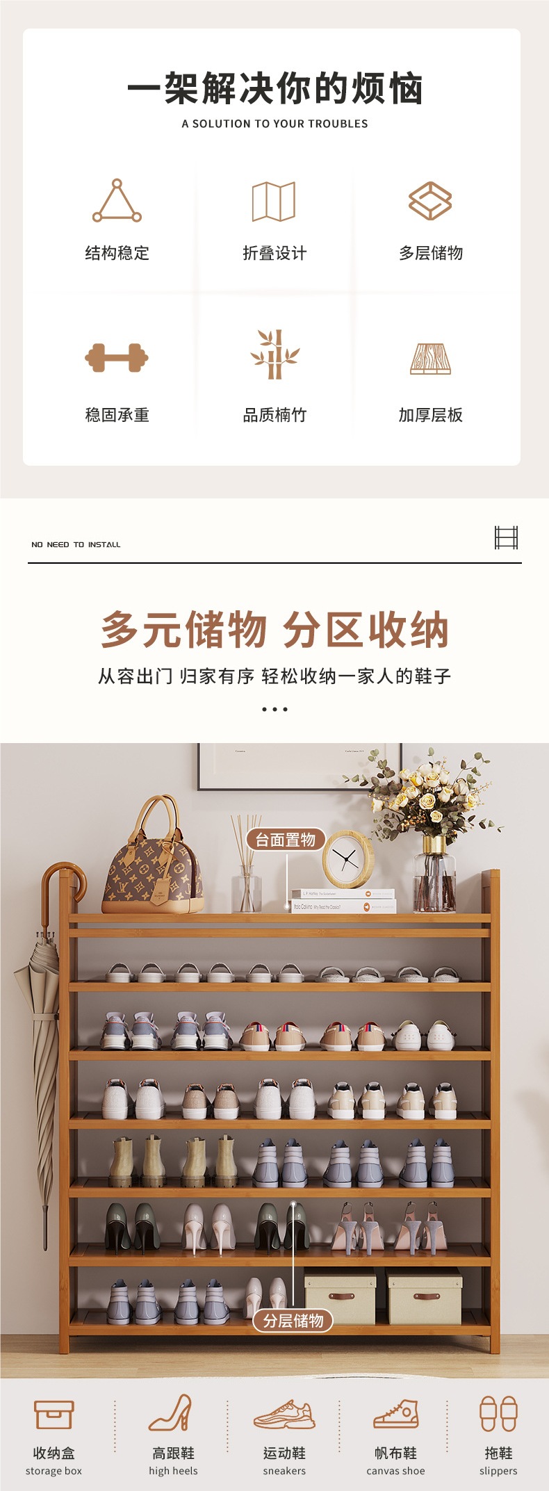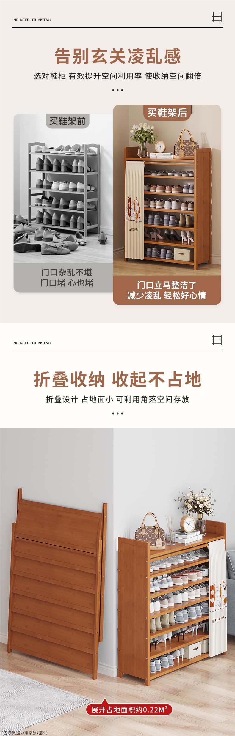 설치가 필요 없는 접이식 신발장, 가정용 출입구용 다층 간이 신발장, 신형 수납 신발장, 난주스토어 가기