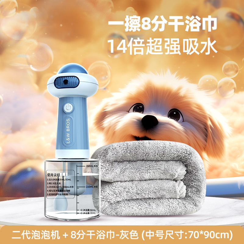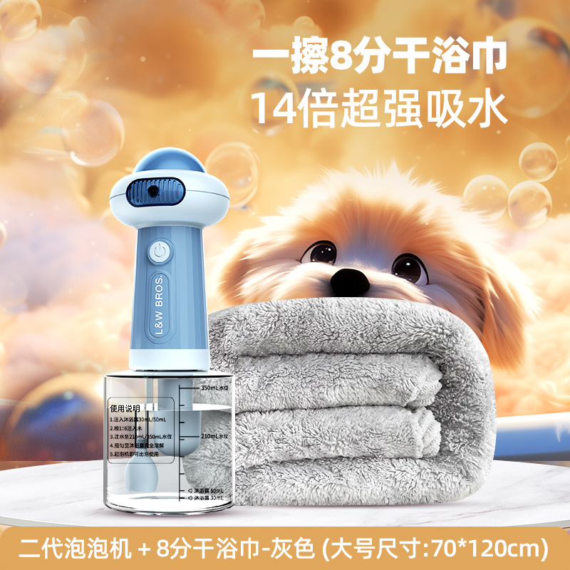 • 2세대 목욕포밍기 + [8분건조] 흡수성 목욕타올 - 그레이 - 중형