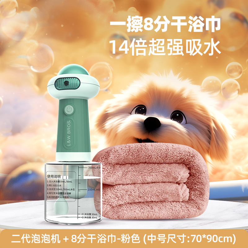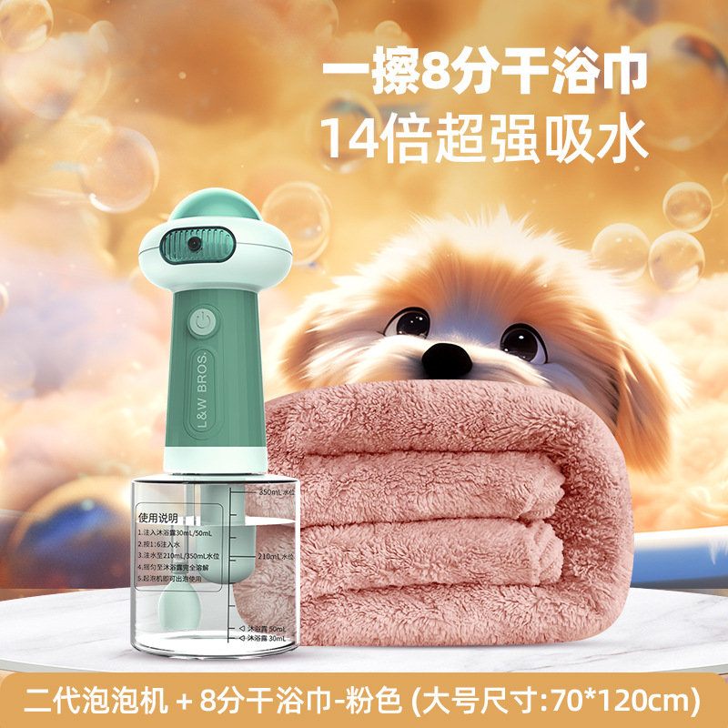 • 2세대 목욕거품기 + [8분건조] 흡수성 목욕타올 - 핑크 - 중형