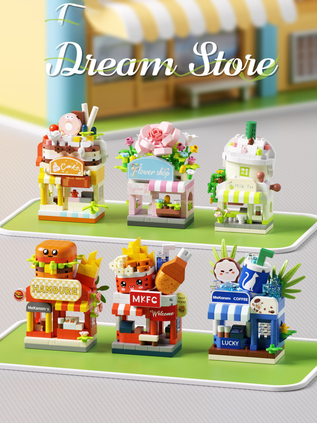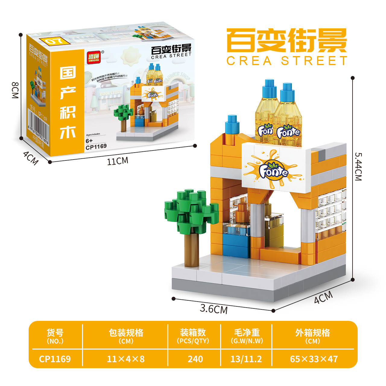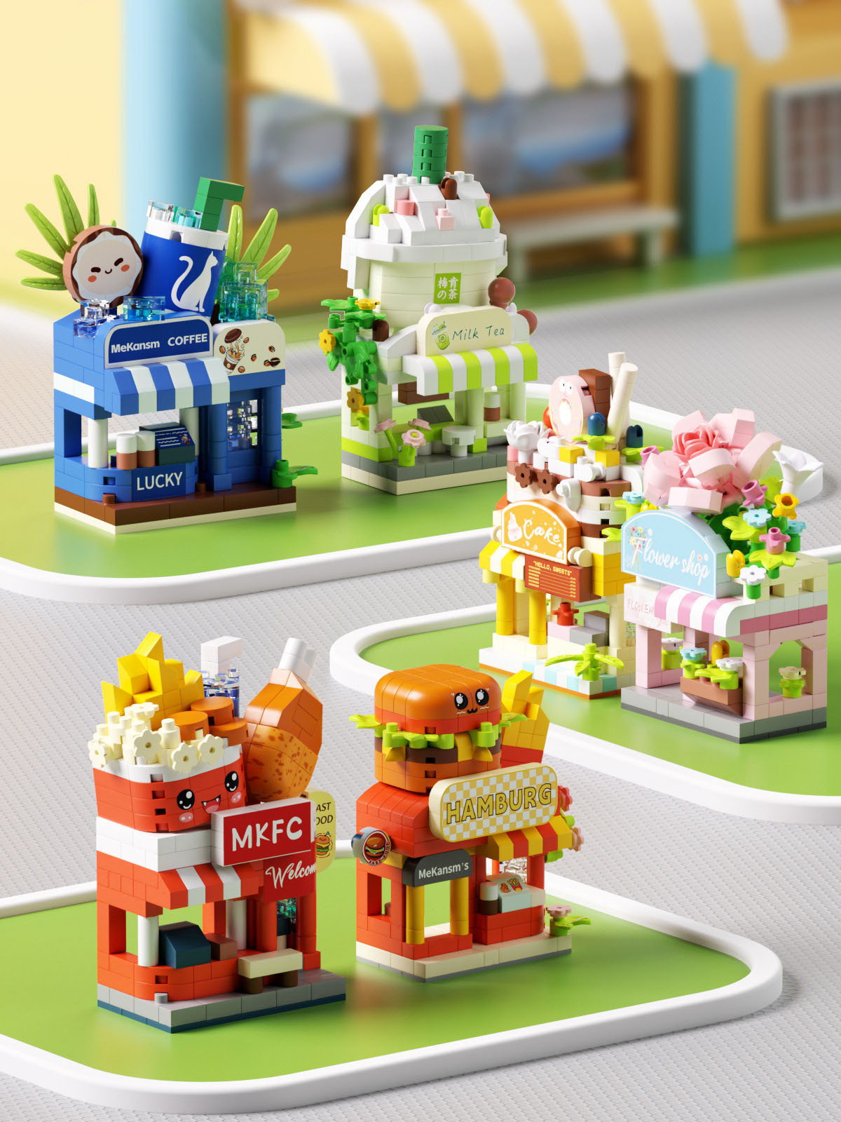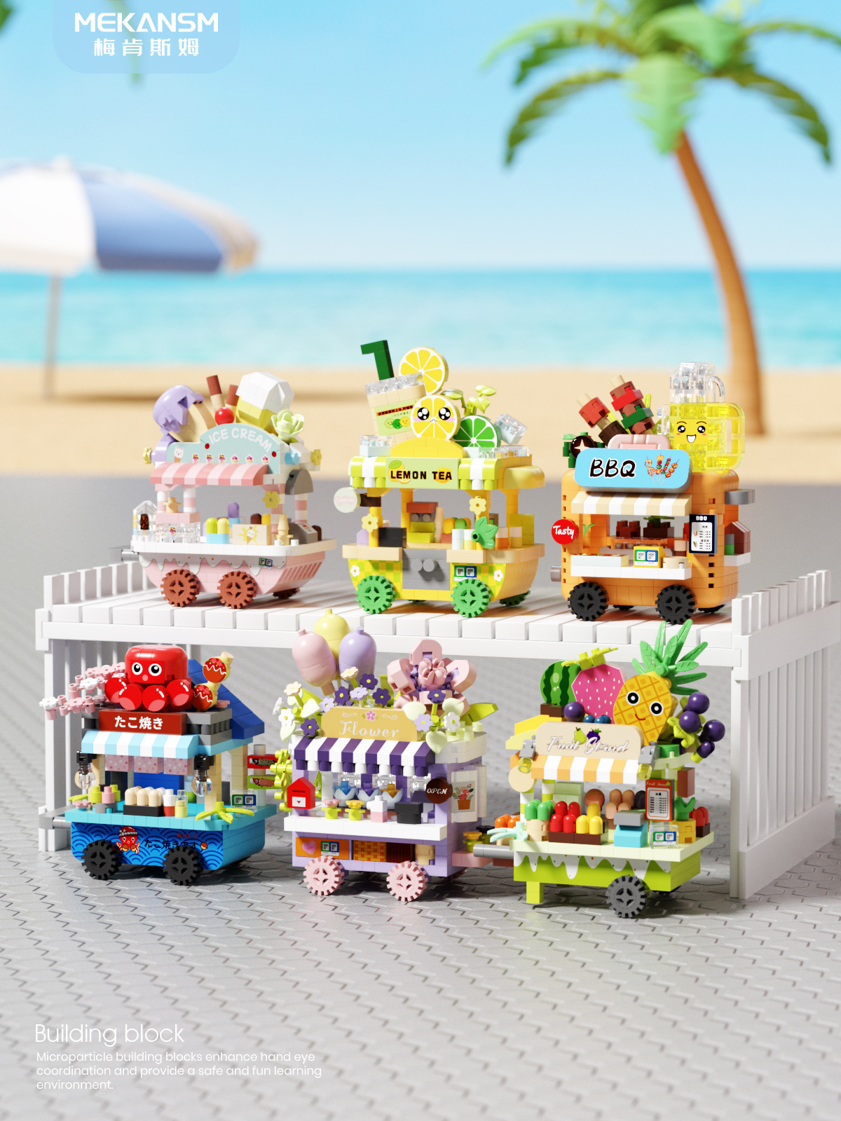 국경 간 노점 판매 자동차 스트리트 뷰 빌딩 블록 어린이 장난감 마이크로 입자 장식품 교육 조립 선물 도매스토어 가기