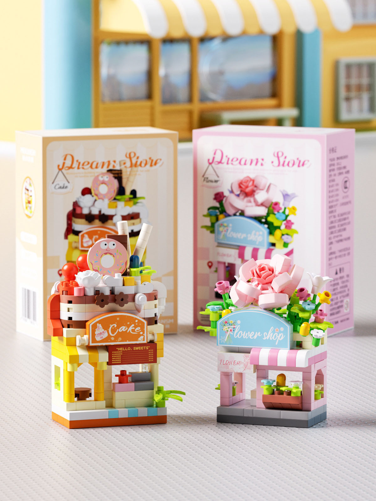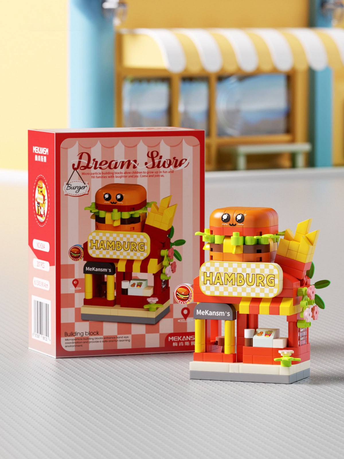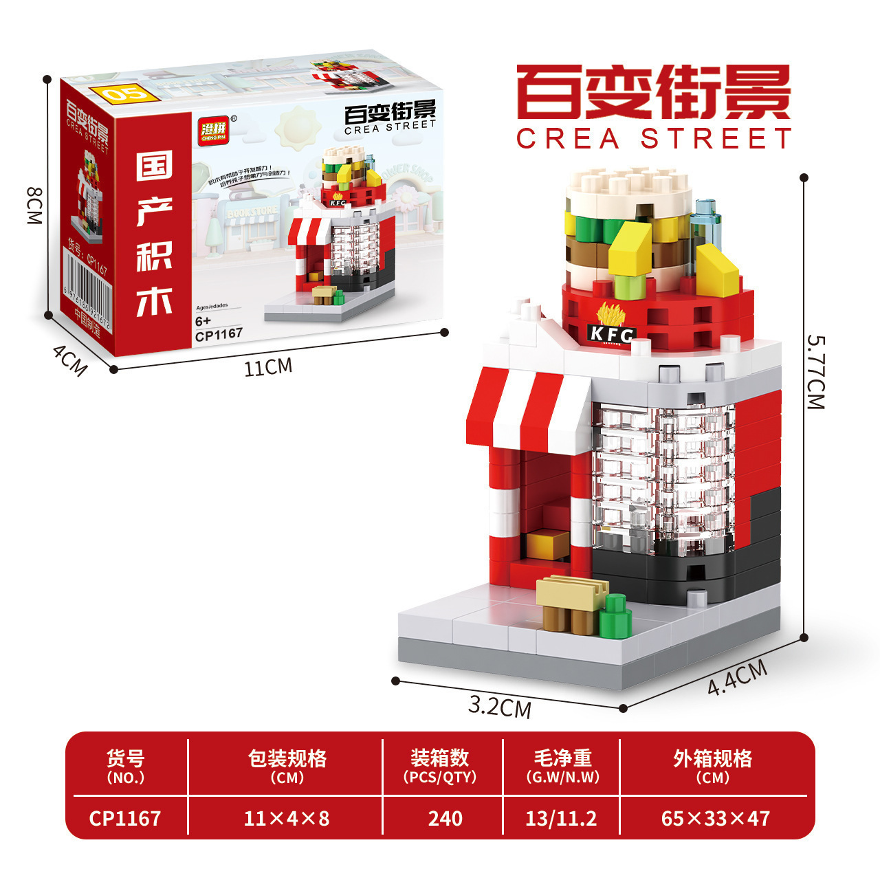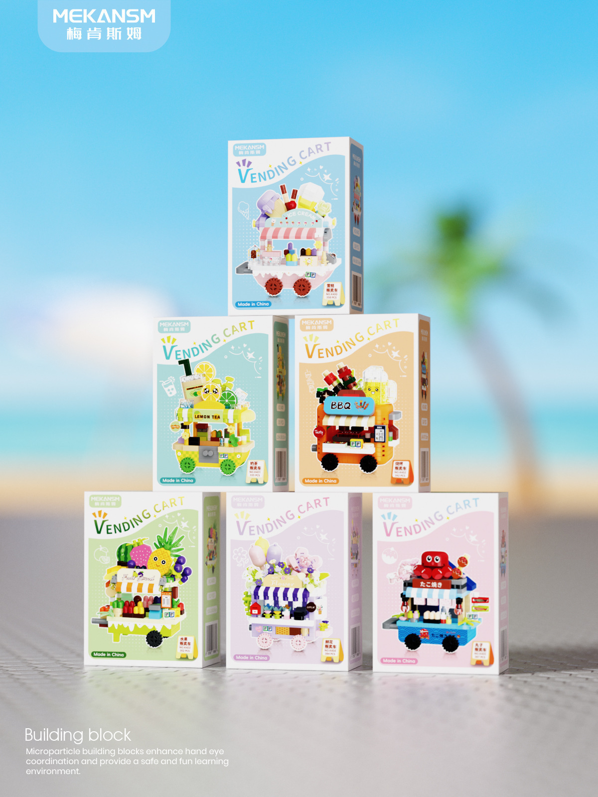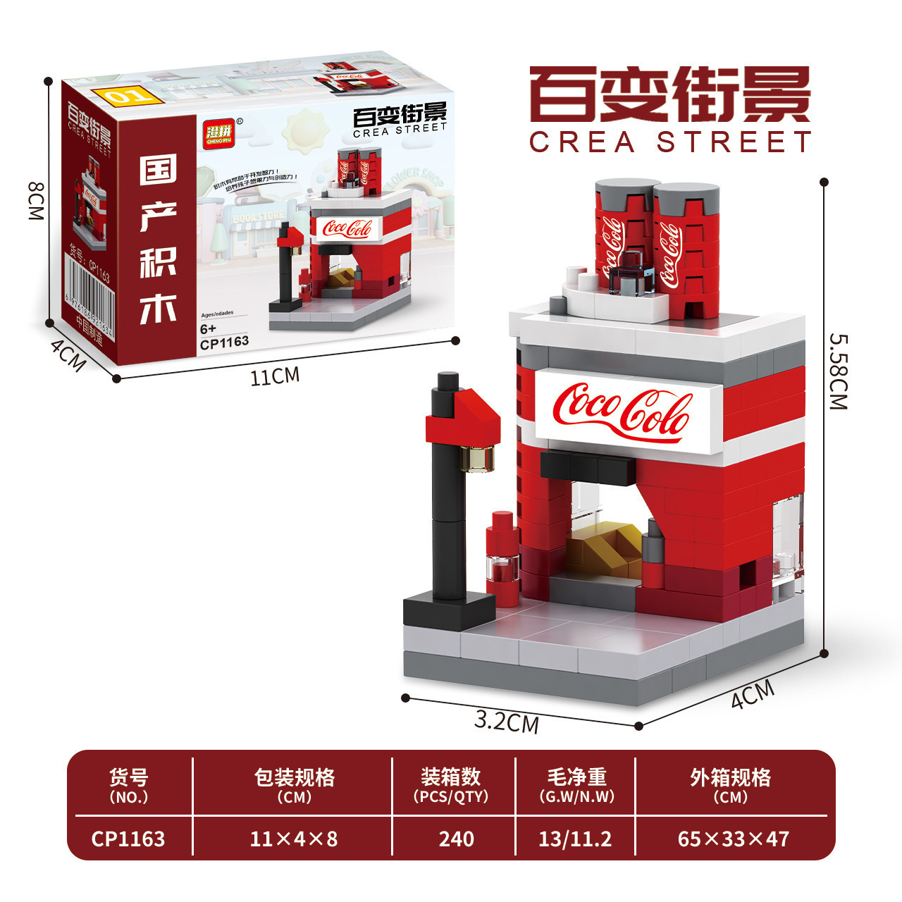 국경 간 노점 판매 자동차 스트리트 뷰 빌딩 블록 어린이 장난감 마이크로 입자 장식품 교육 조립 선물 도매스토어 가기