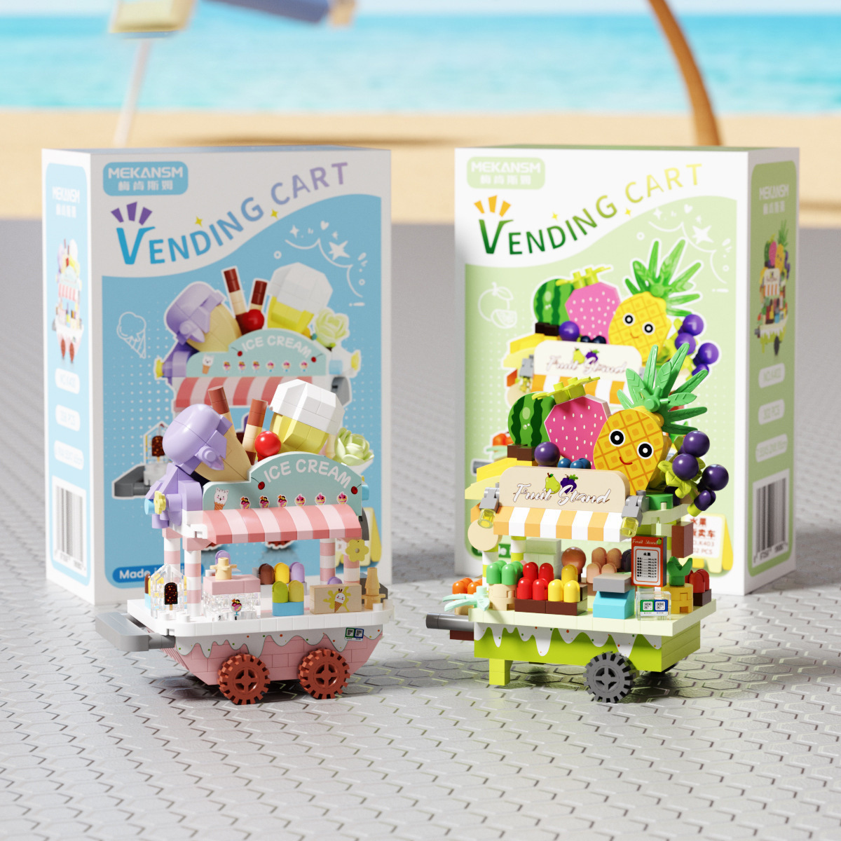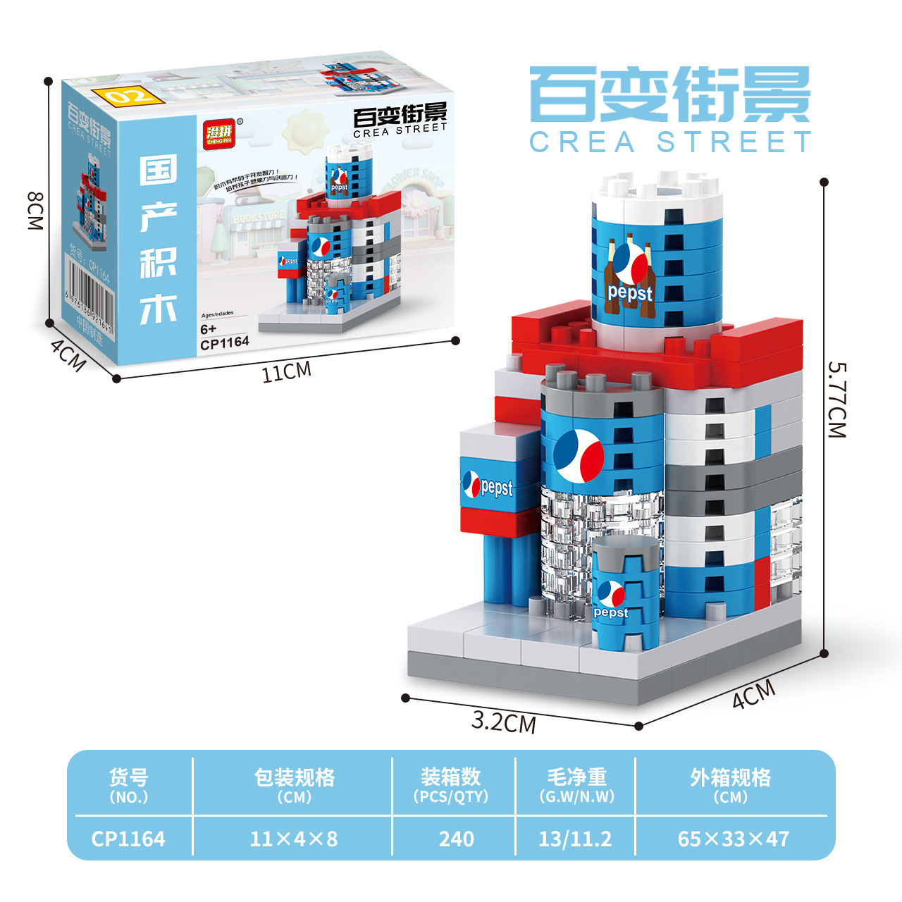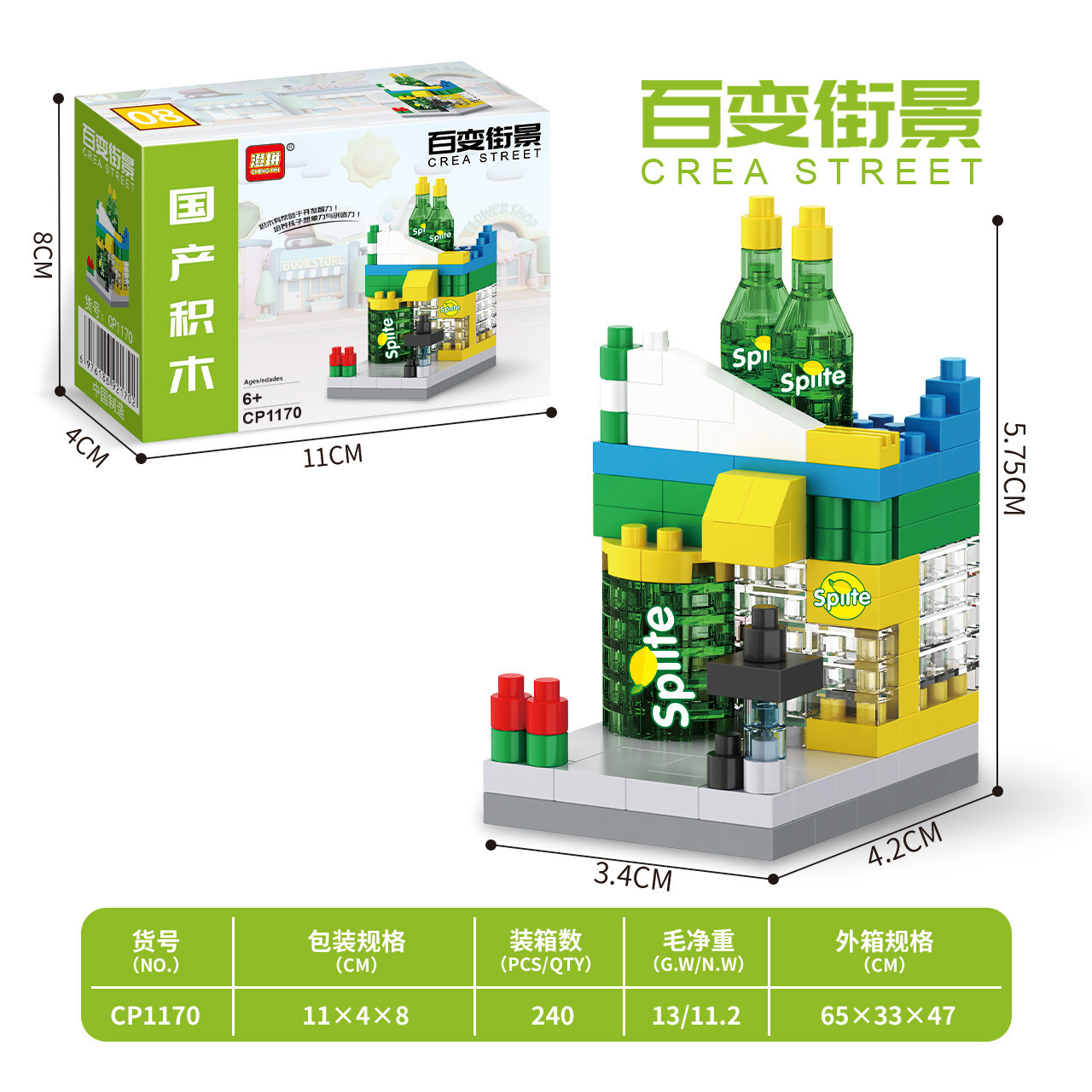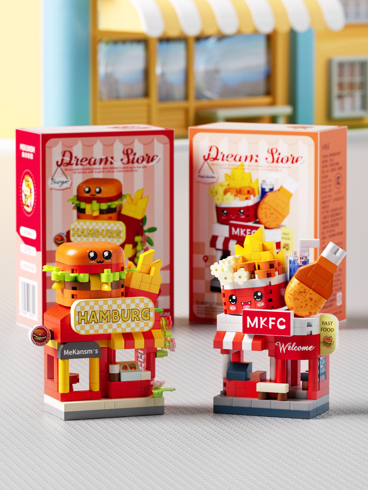 국경 간 노점 판매 자동차 스트리트 뷰 빌딩 블록 어린이 장난감 마이크로 입자 장식품 교육 조립 선물 도매스토어 가기