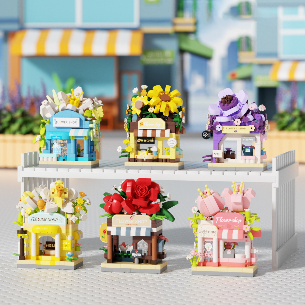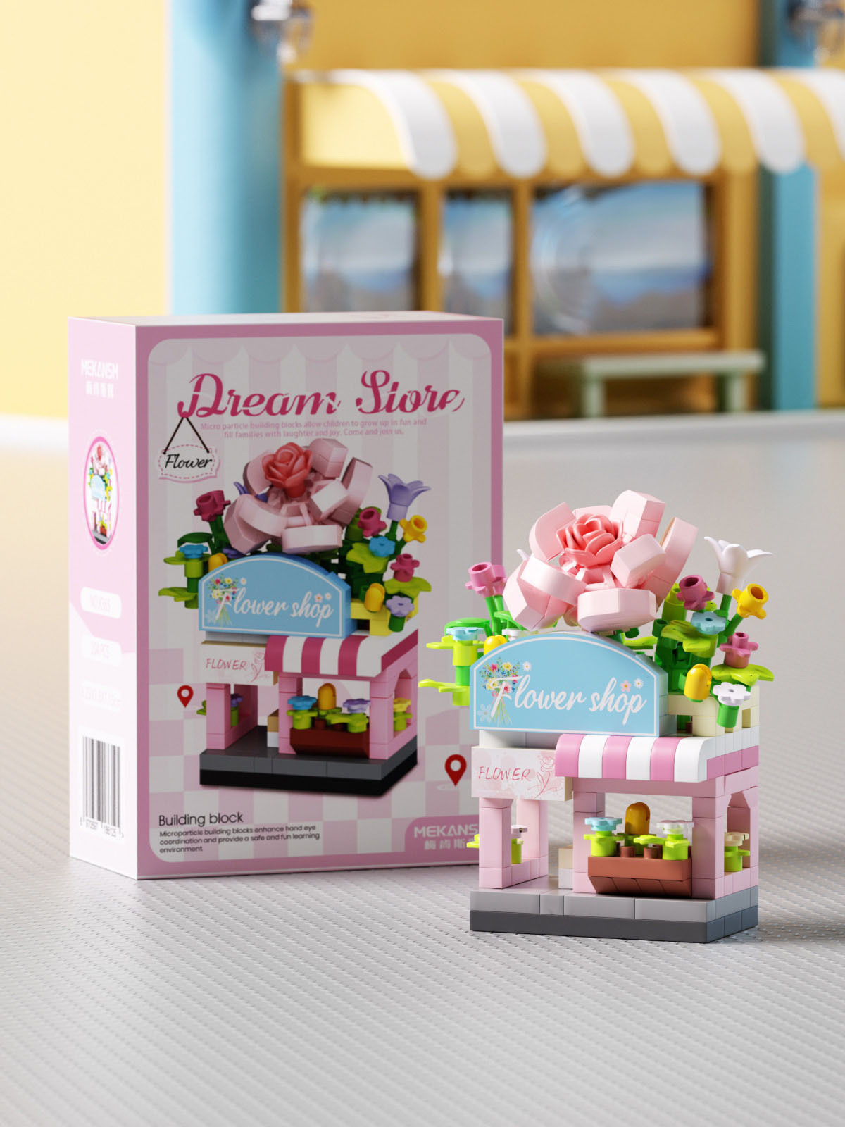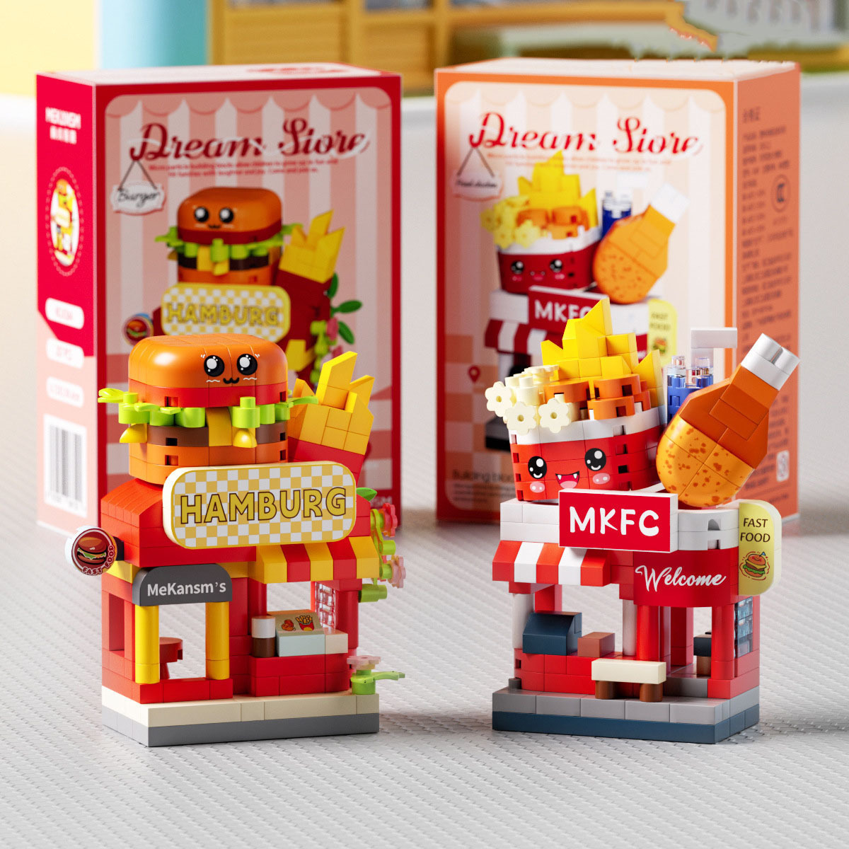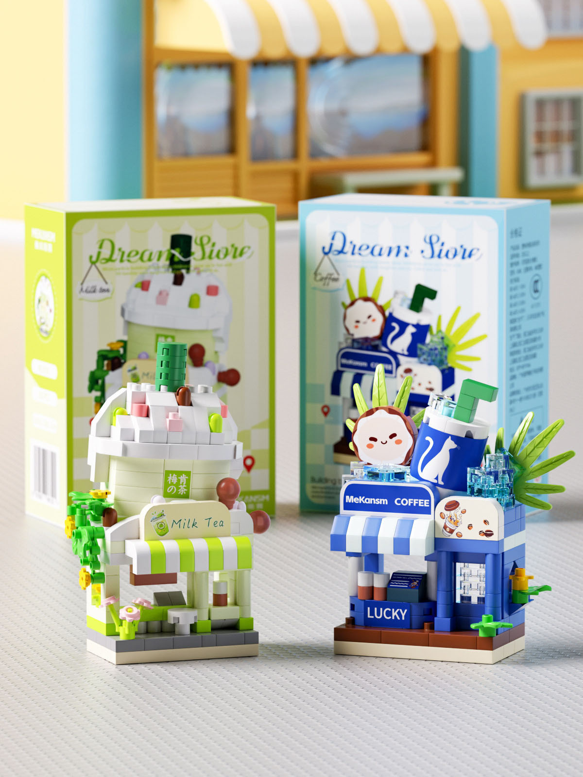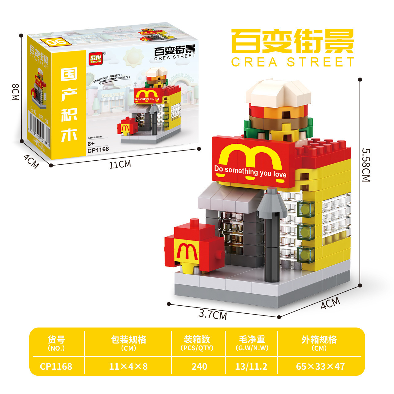 국경 간 노점 판매 자동차 스트리트 뷰 빌딩 블록 어린이 장난감 마이크로 입자 장식품 교육 조립 선물 도매스토어 가기