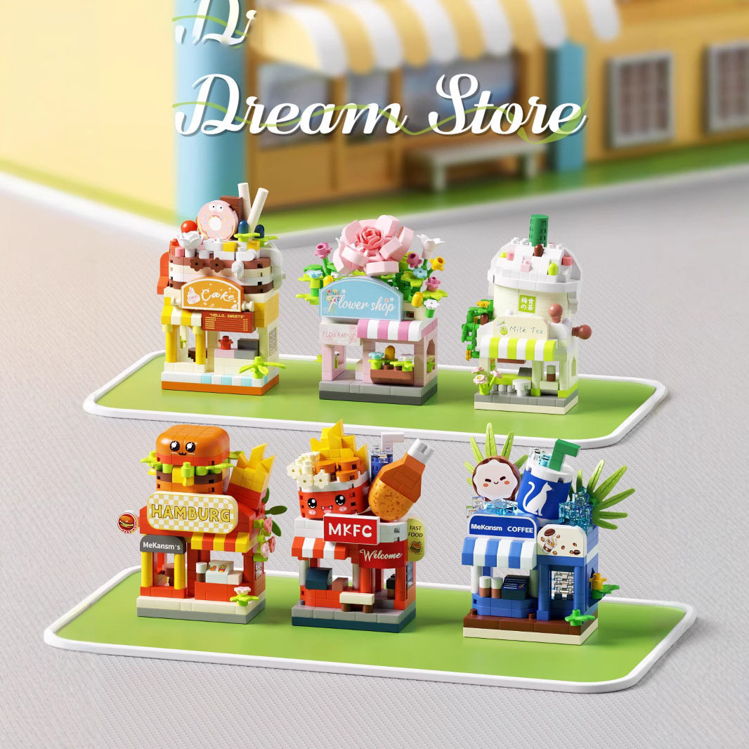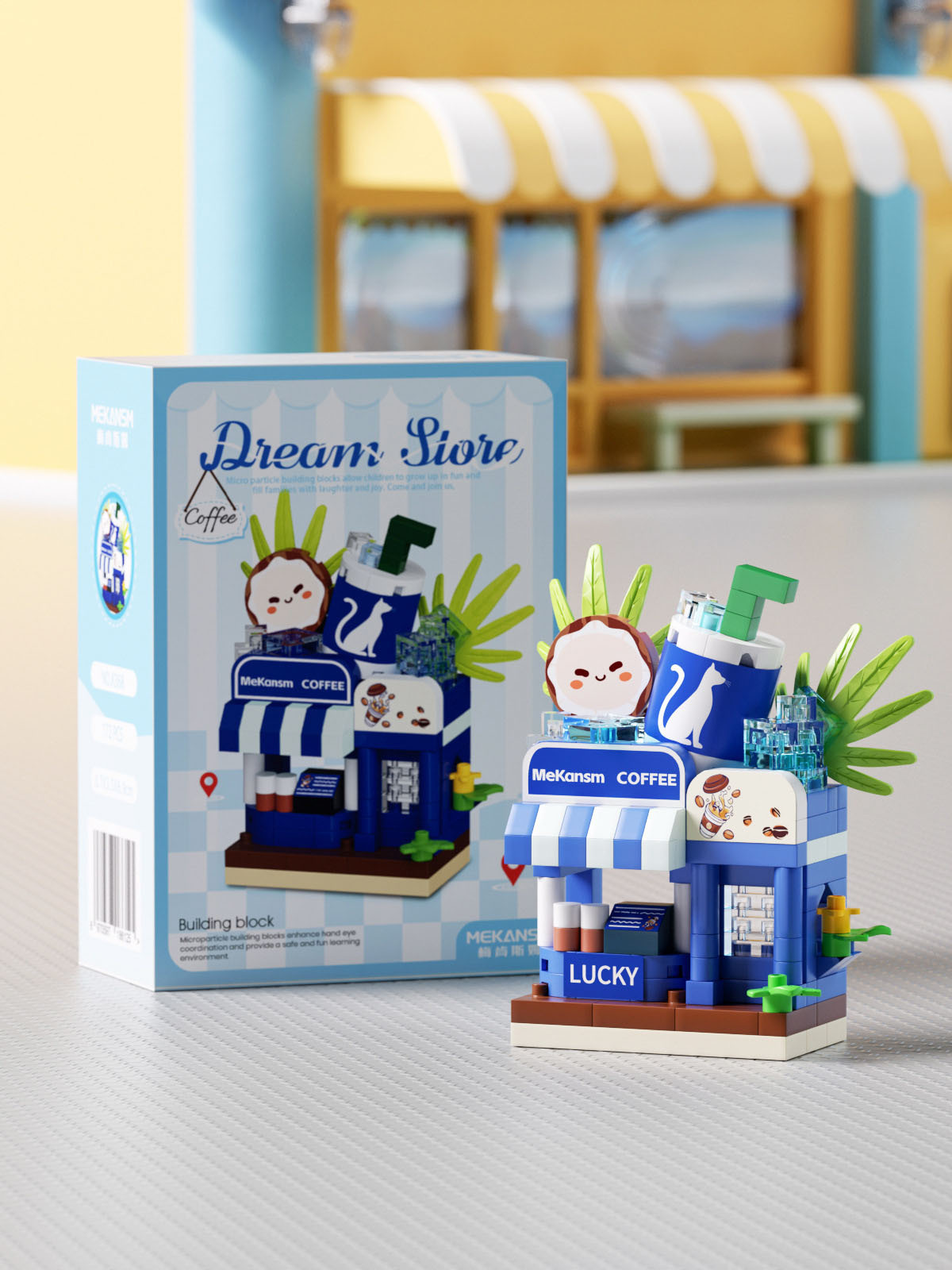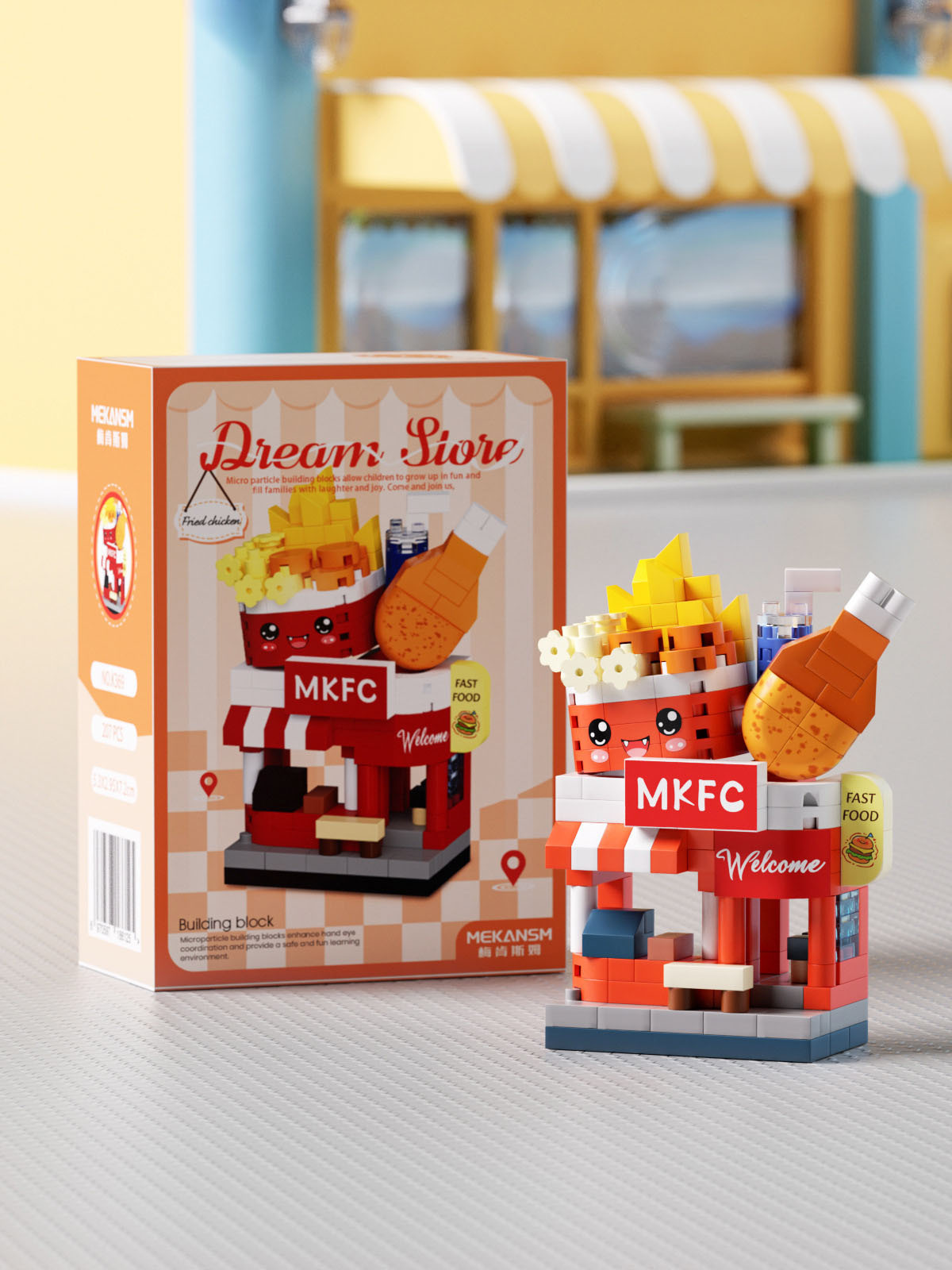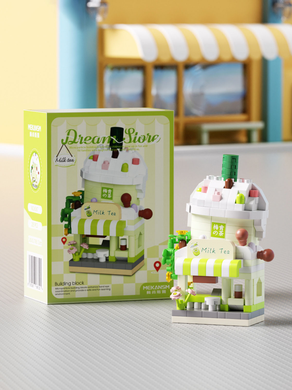 국경 간 노점 판매 자동차 스트리트 뷰 빌딩 블록 어린이 장난감 마이크로 입자 장식품 교육 조립 선물 도매스토어 가기