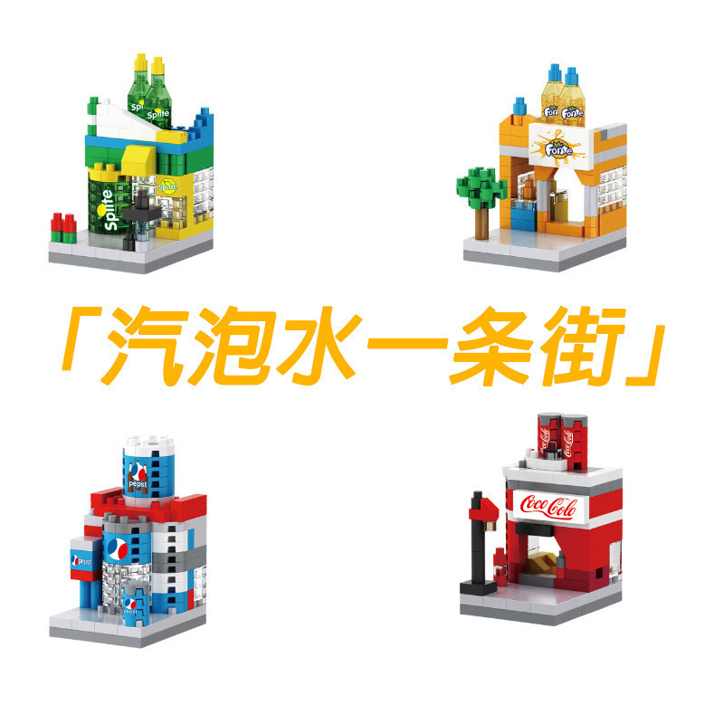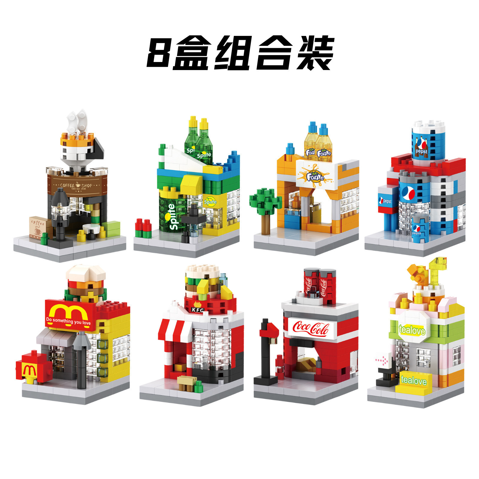 국경 간 노점 판매 자동차 스트리트 뷰 빌딩 블록 어린이 장난감 마이크로 입자 장식품 교육 조립 선물 도매