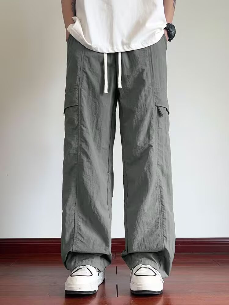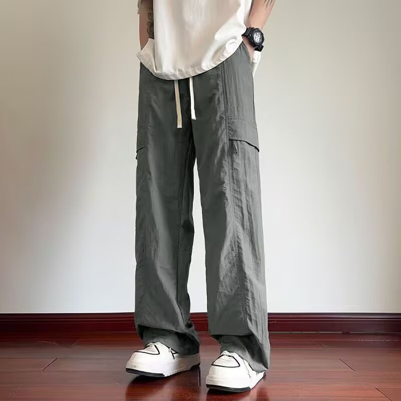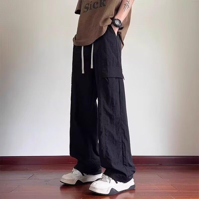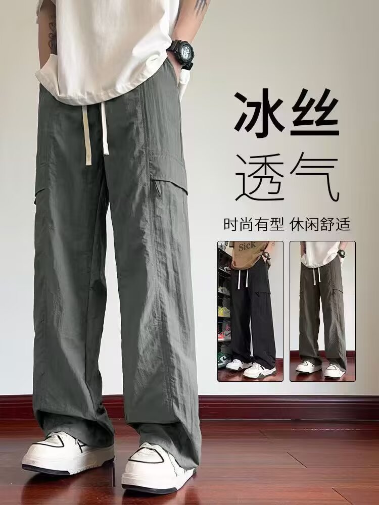 여름 새로운 트렌디하고 멋진 남성용 바지 홍콩 스타일 루즈하고 패셔너블한 브랜드 캐주얼 스포츠 스트레이트 바지
