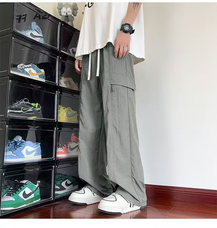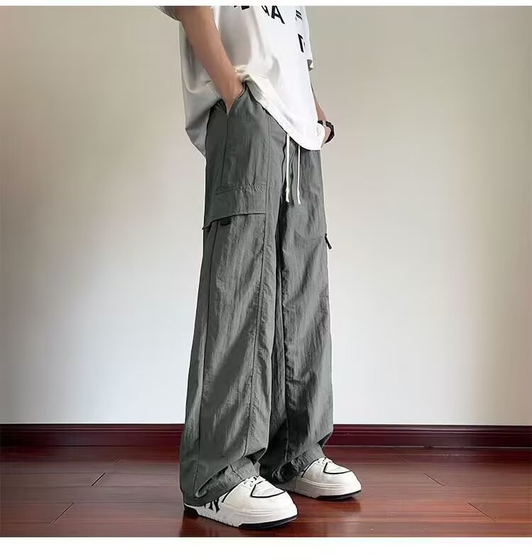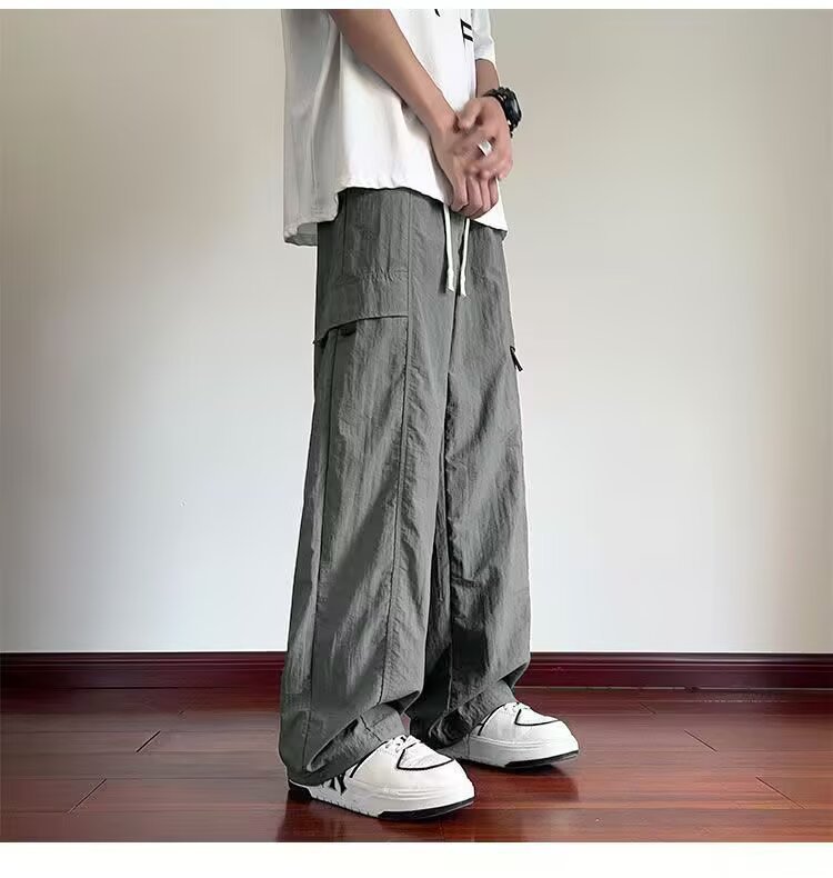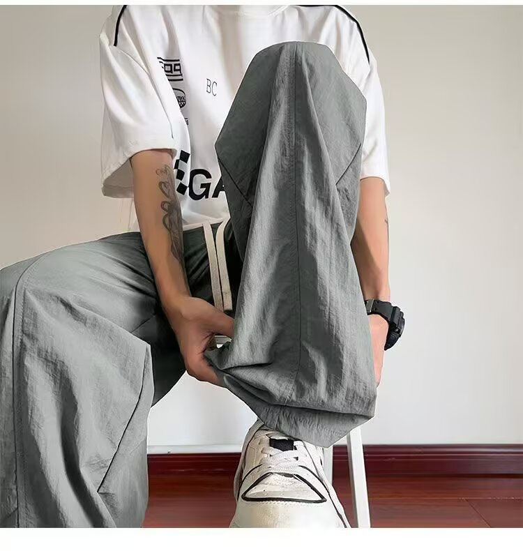 여름 새로운 트렌디하고 멋진 남성용 바지 홍콩 스타일 루즈하고 패셔너블한 브랜드 캐주얼 스포츠 스트레이트 바지스토어 가기