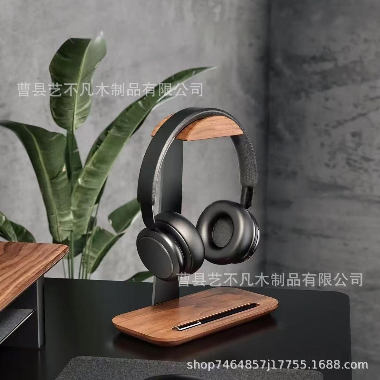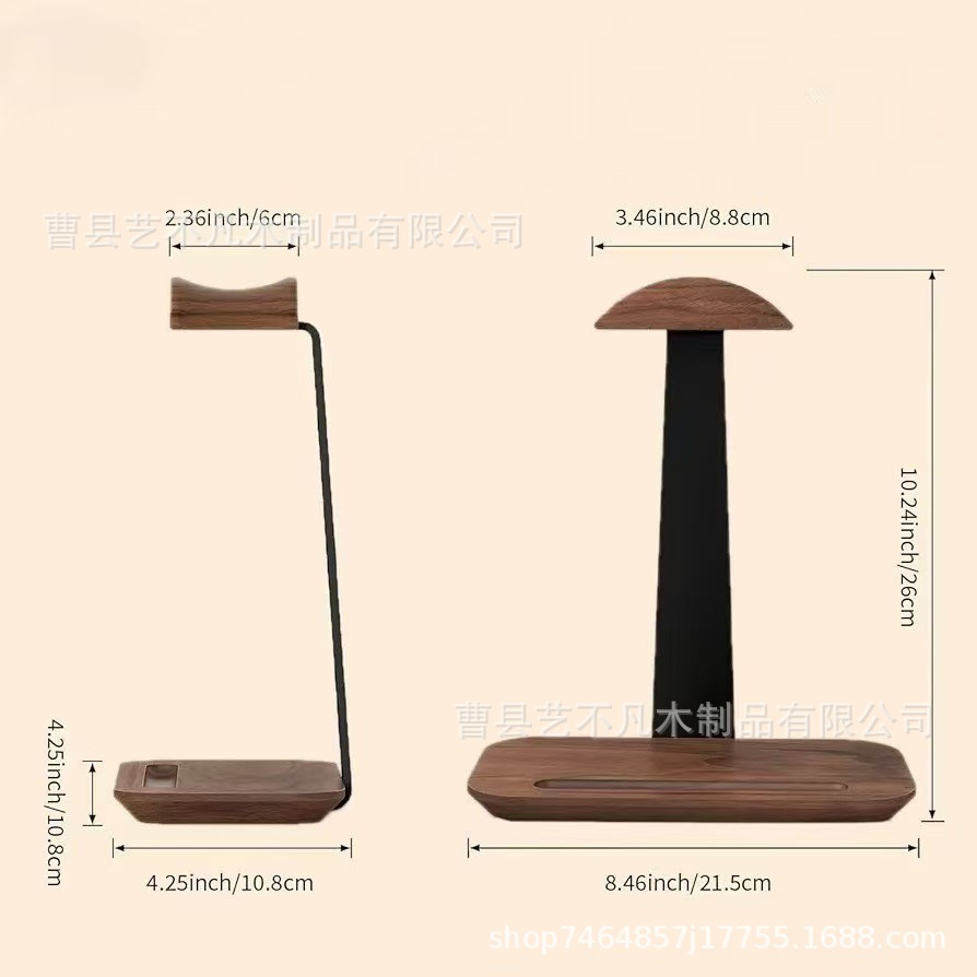맞춤형 목재 헤드폰 걸이, 이동식 데스크탑 수직 헤드폰 보관함, 철제 및 목재 결합 보관함스토어 가기