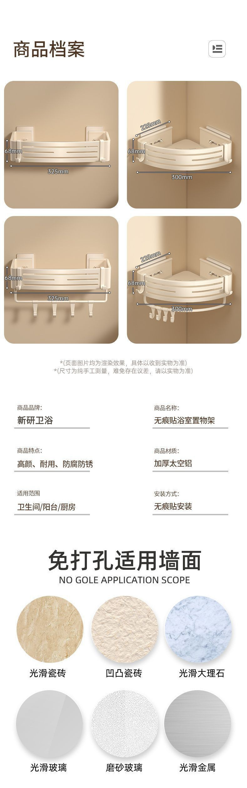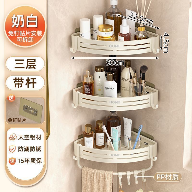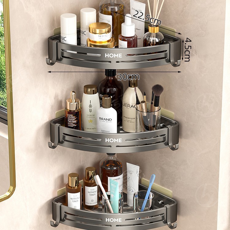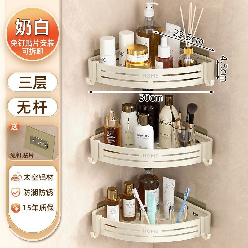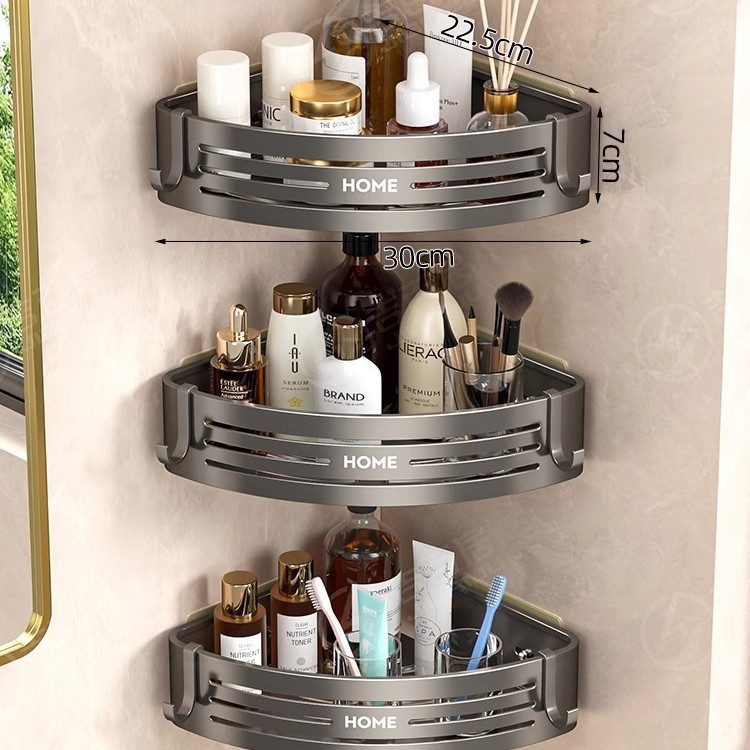 공장 공급 우주 알루미늄 펀치 없는 욕실 선반, 욕실 삼각 바구니, 벽걸이, 욕실 코너 선반스토어 가기